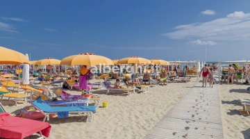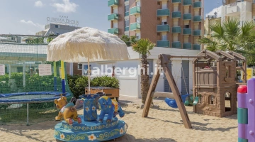 In spiaggia: animazione, parco giochi, acquascivolo, braccialetto antismarrimento.