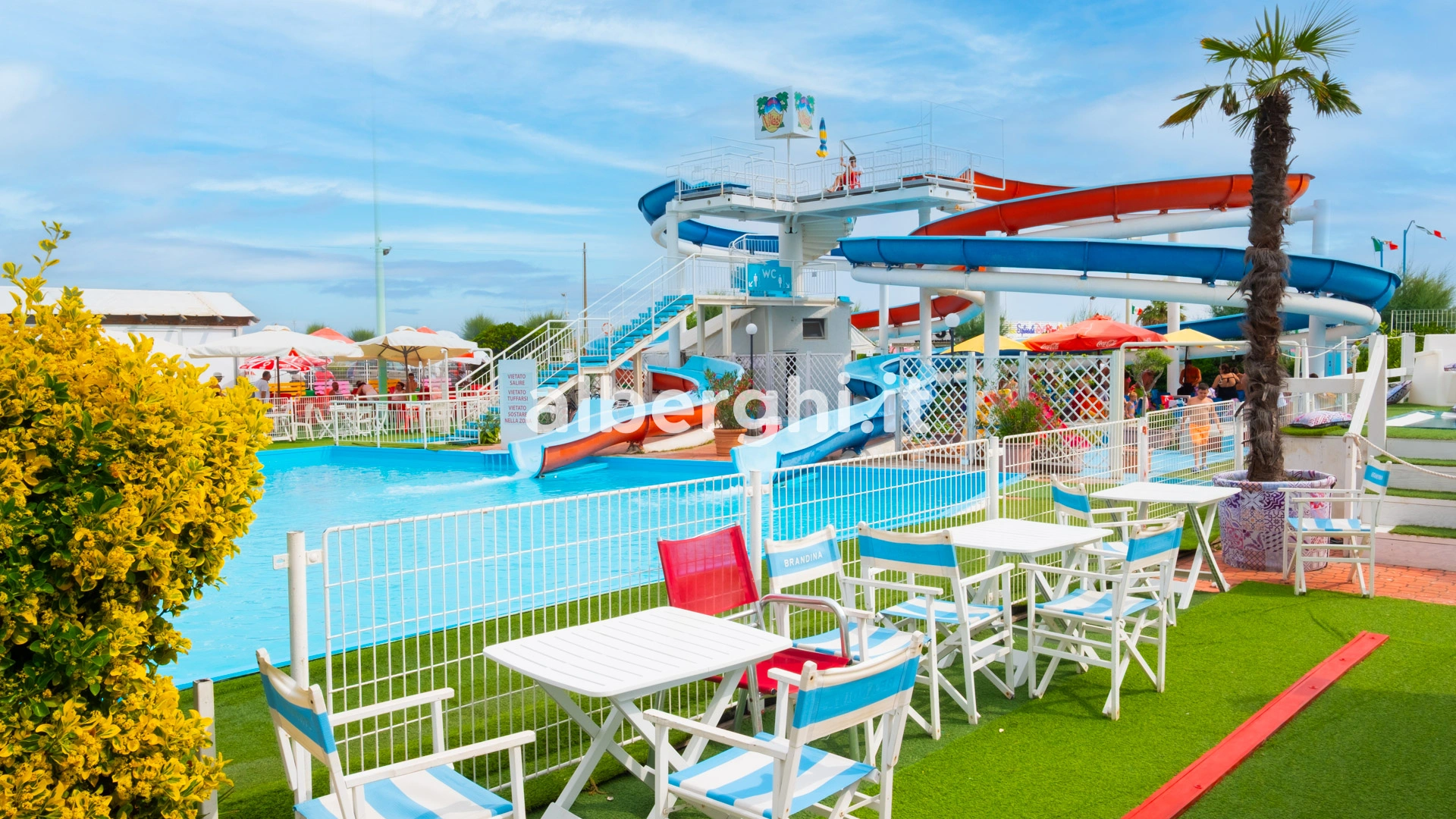 Giardino con giochi per bambini, biciclette a disposizione anche con seggiolini, sala ristorante climatizzata, ascensore, bar, soggiorno, sala TV, quotidiani a disposizione nella hall. Ingresso gratuito presso il parco acquatico Riccione Beach Village (4 piscine, acquascivoli, acquagym, animazione e mini club per bambini).