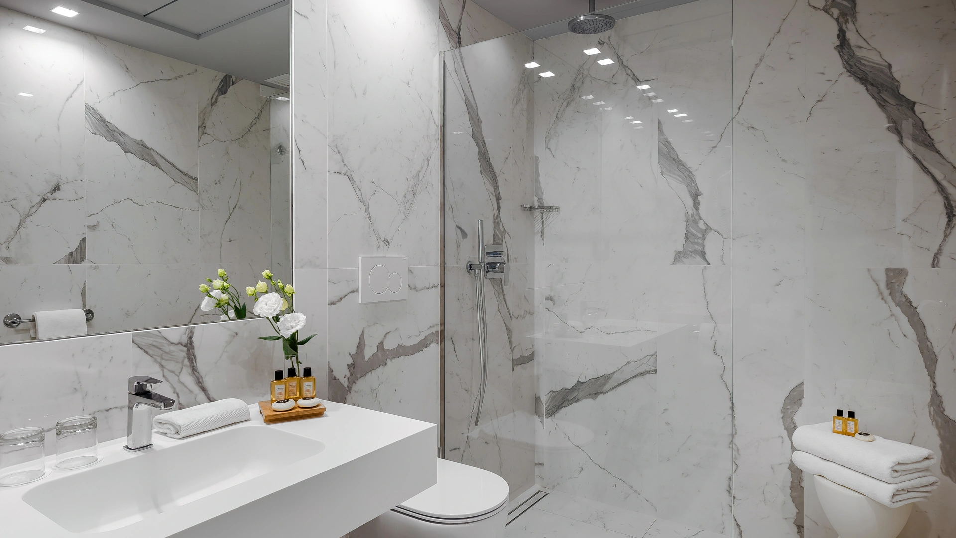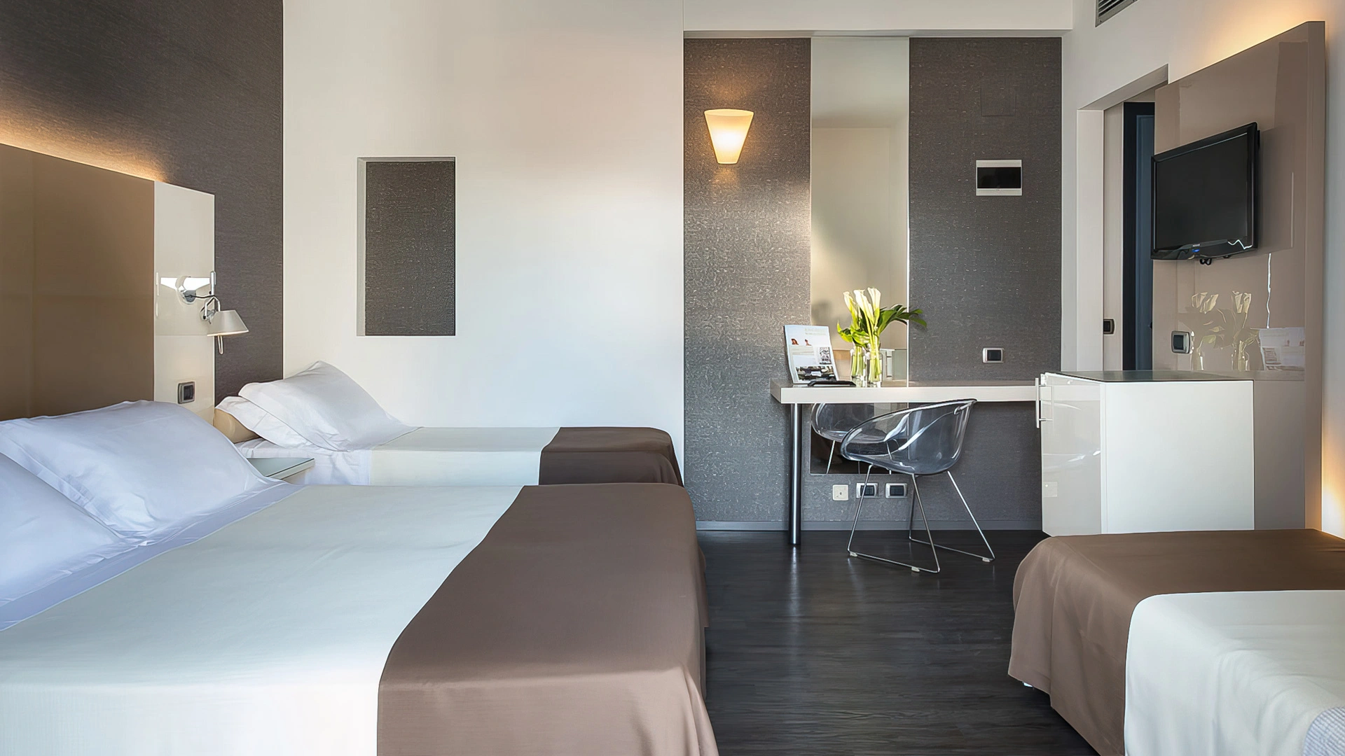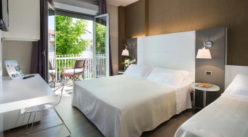 Le stanze dispongono di climatizzatore con regolazione indipendente, balcone, TV LCD sat, Wi-Fi, cassaforte, frigobar, telefono diretto, bagno privato con box doccia o vasca, asciugacapelli.