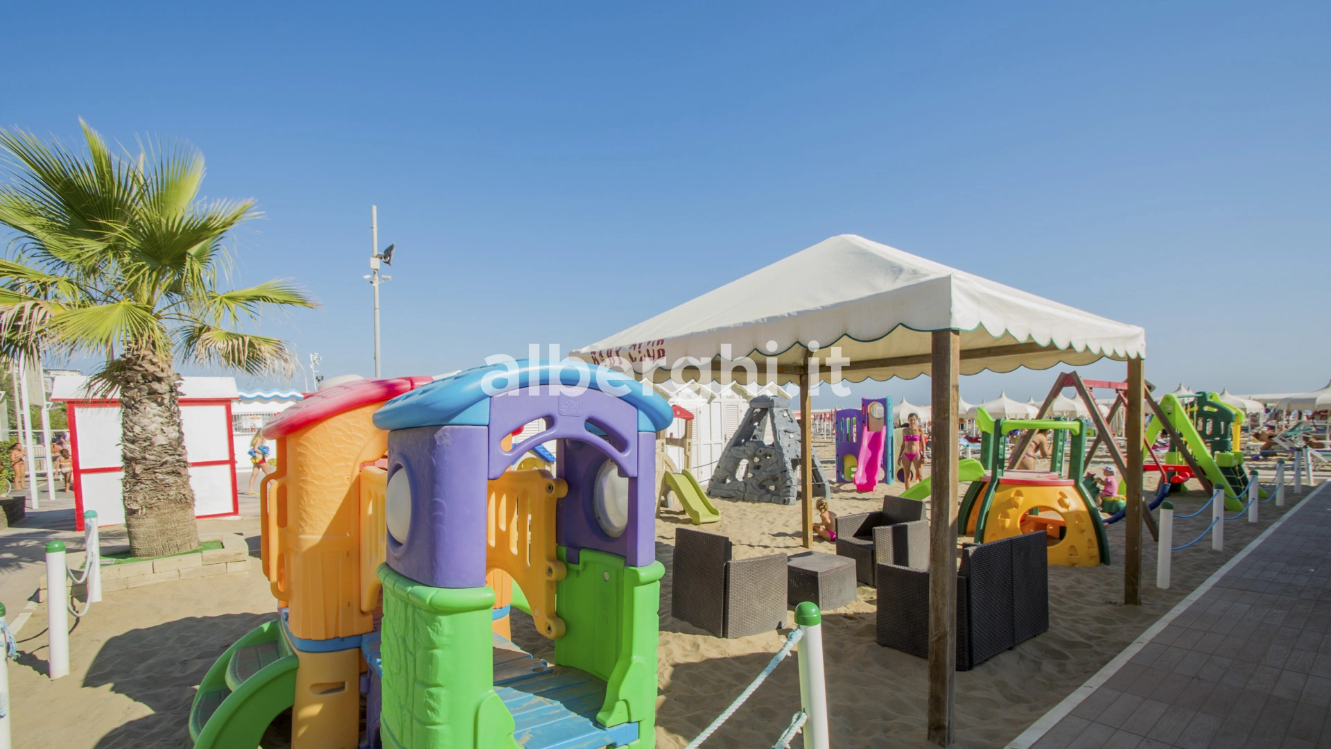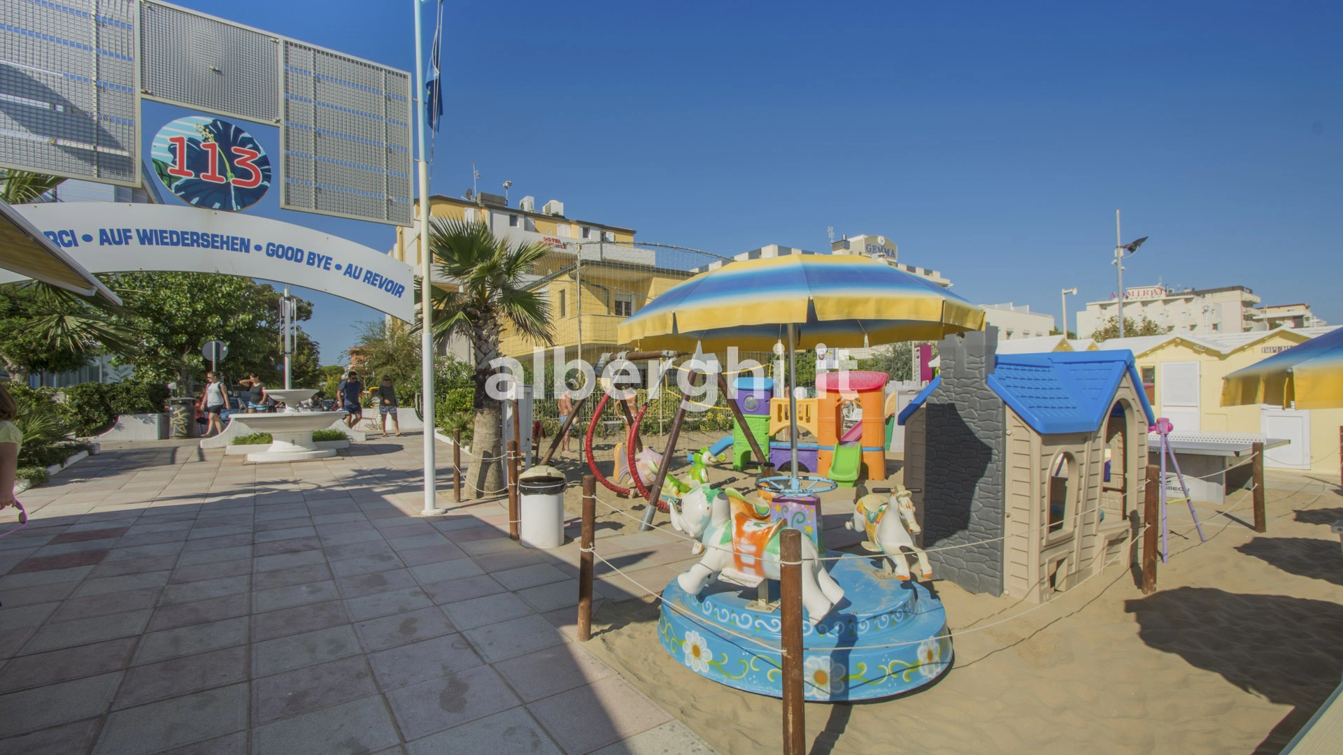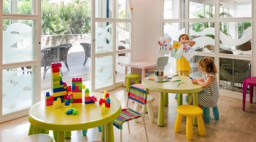 In hotel: piscina per bimbi, area giochi interna ed esterna, animazione, passeggini, merenda pomeridiana, pediatra, baby sitter.