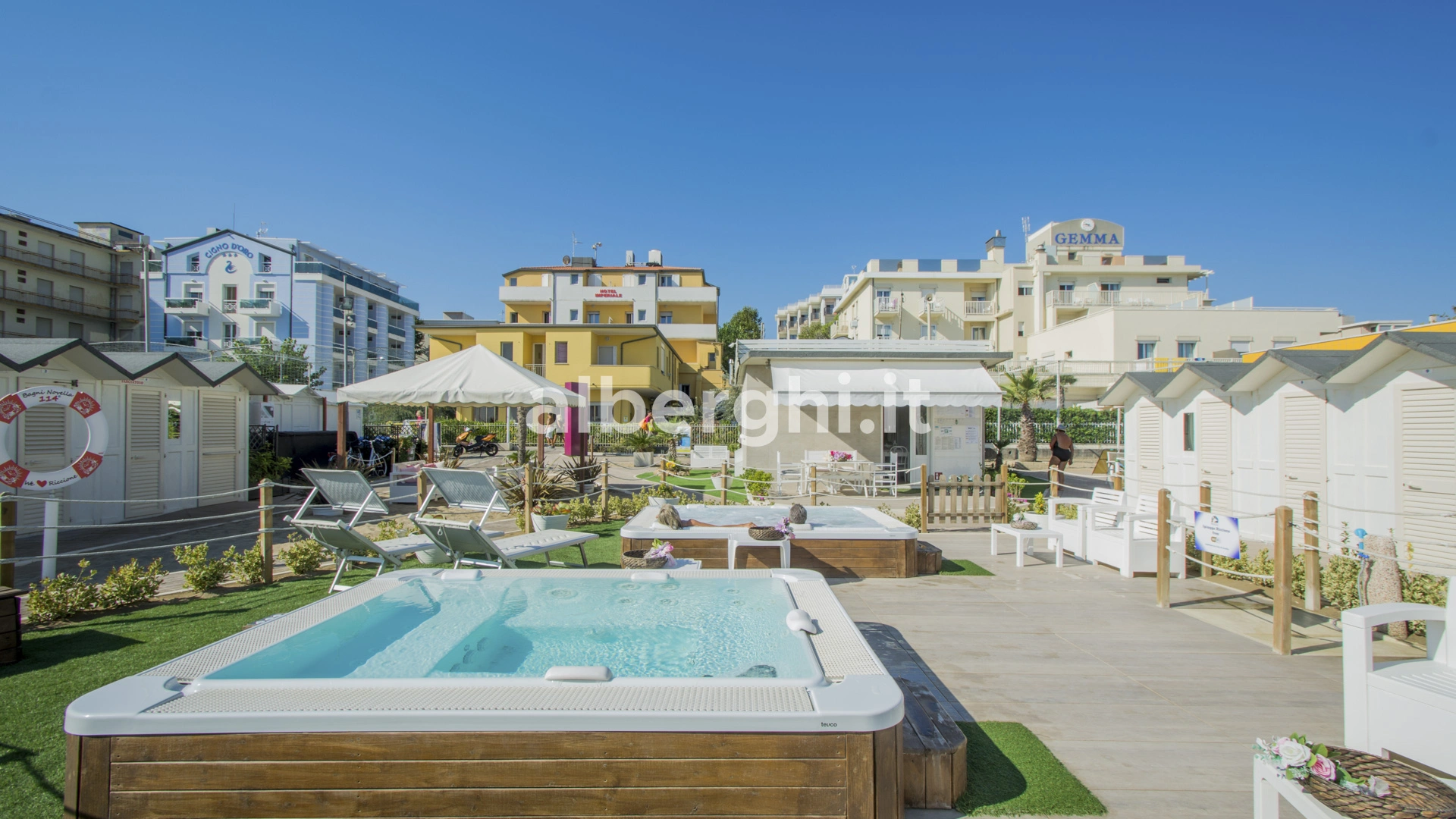 L'hotel è convenzionato con il Bagno n.112, n.113 e n.114 con grande piscina direttamente sulla sabbia, chiringuito, area giochi per bambini.