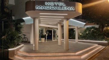 L’Hotel Maddalena, 3 stelle Superior di Riccione, dispone di una grande piscina esterna riscaldata con idromassaggio e area per bambini con acqua bassa, servizi per famiglie, garage sotterraneo e Wi-Fi. Ammette animali di piccola taglia.