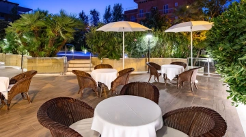 ALTRO: serate a tema "Romagnolo" con i prodotti gastronomici tipici e aperitivi a bordo piscina il sabato sera mentre il giovedì viene servito un buffet di frutta esotica e dolci con musica dal vivo. È possibile richiedere il pranzo al sacco.