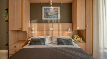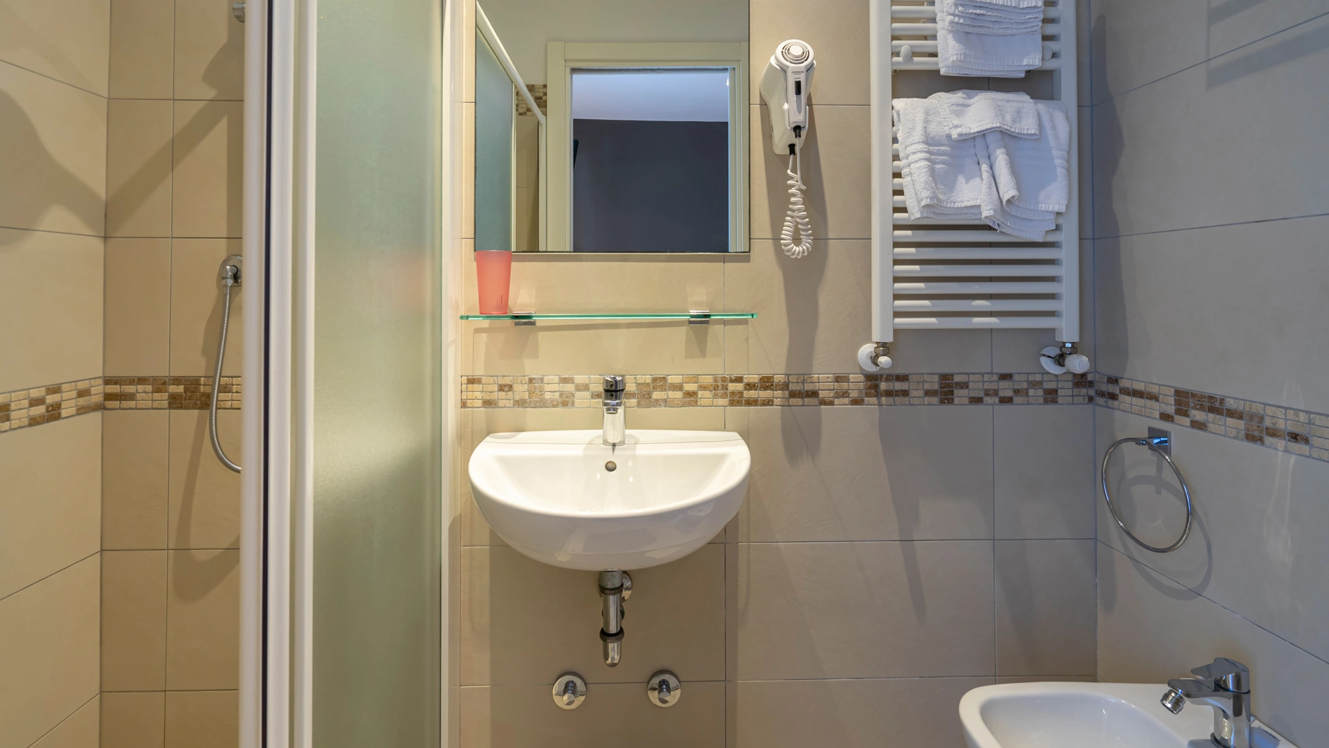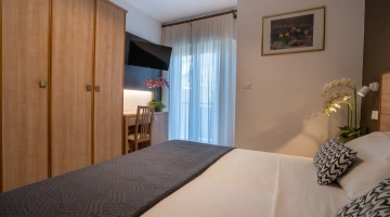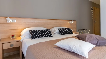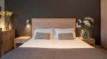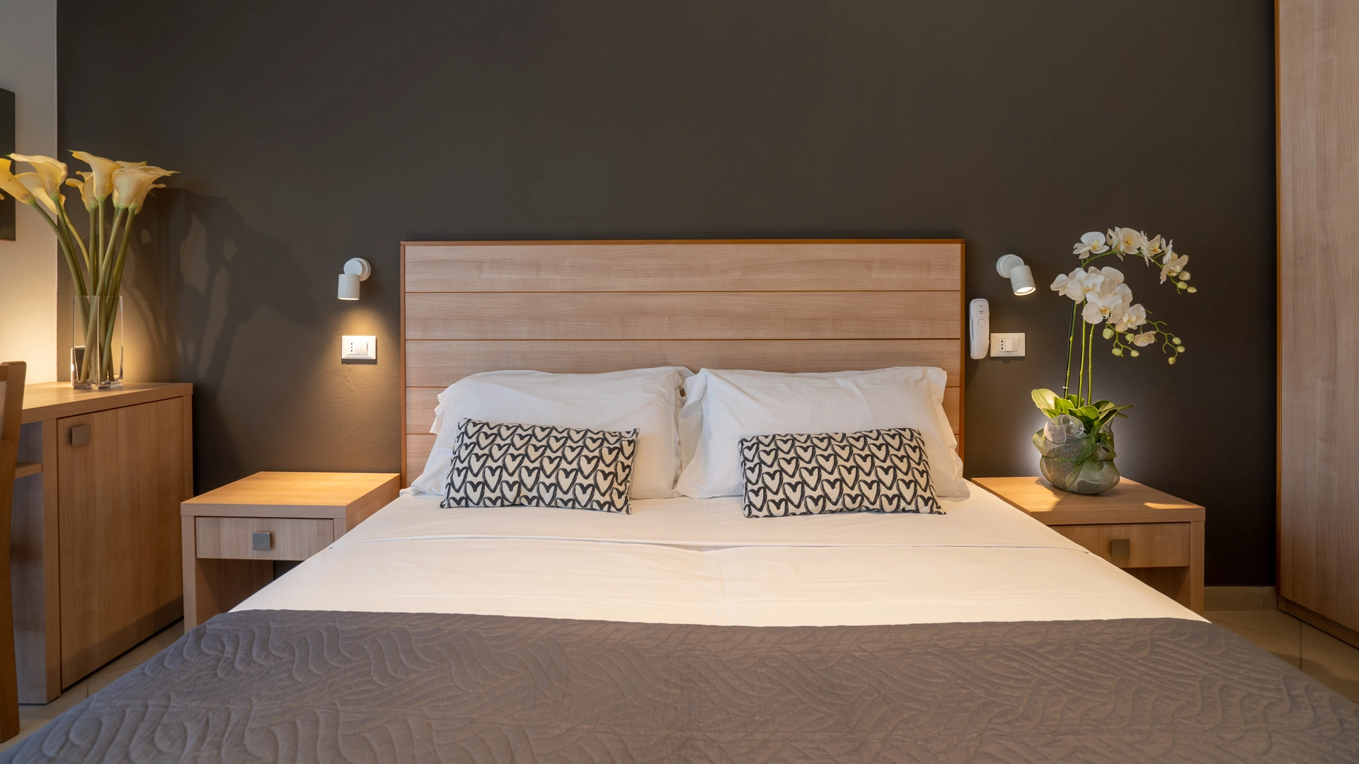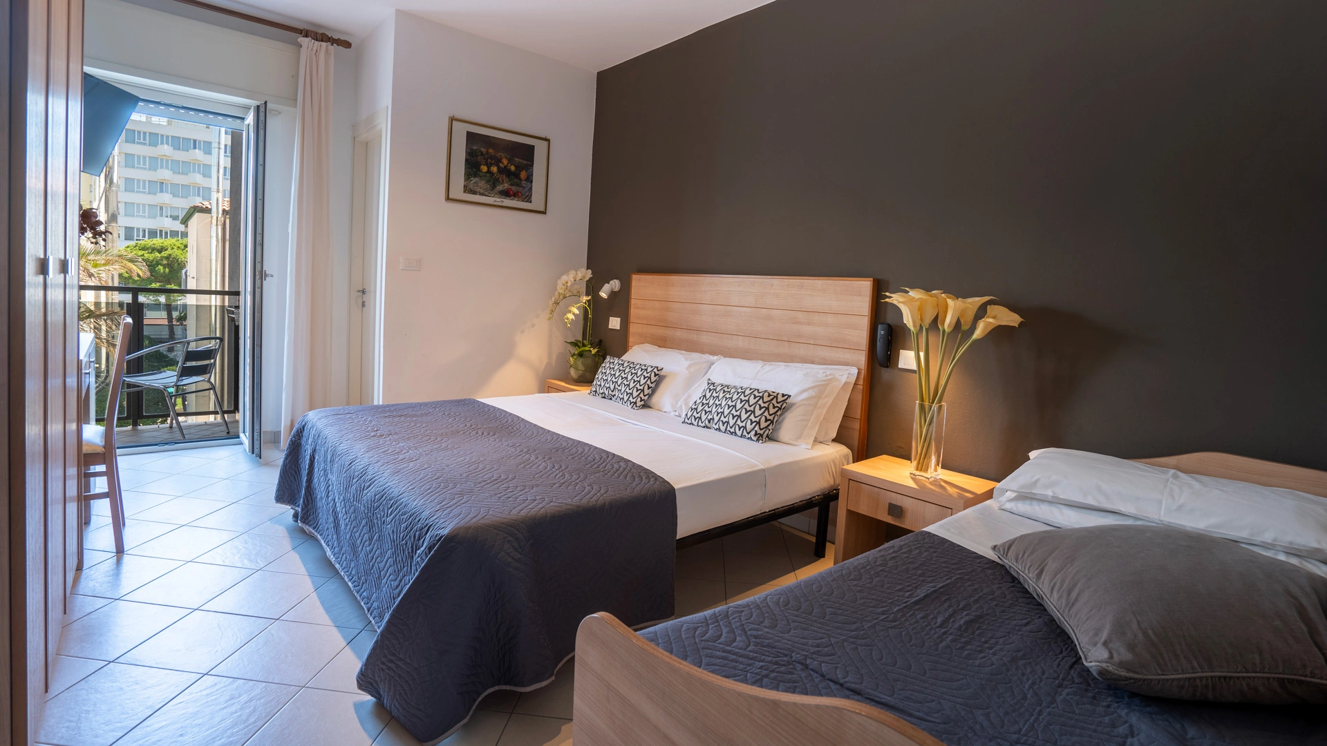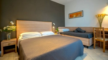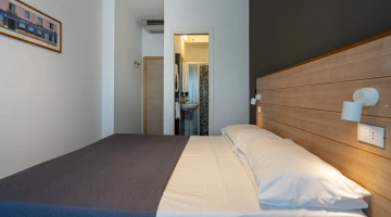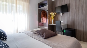 Tutte le camere sono rinnovate e dotate di Wi-Fi con fibra, aria condizionata, bagno privato, box doccia con saliscendi, asciugacapelli, Smart TV digitale terrestre LED 32", cassaforte digitale, serrande elettriche, infissi con vetri insonorizzati, apertura con tessera magnetica e telefono.