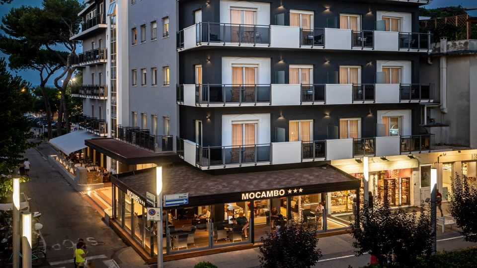 L'Hotel Mocambo, 3 stelle in centro a Riccione, dispone di parcheggio, veranda comune, Wi-Fi veloce, camere con infissi insonorizzati e vista mare, american bar. Su richiesta accetta animali di piccola taglia.