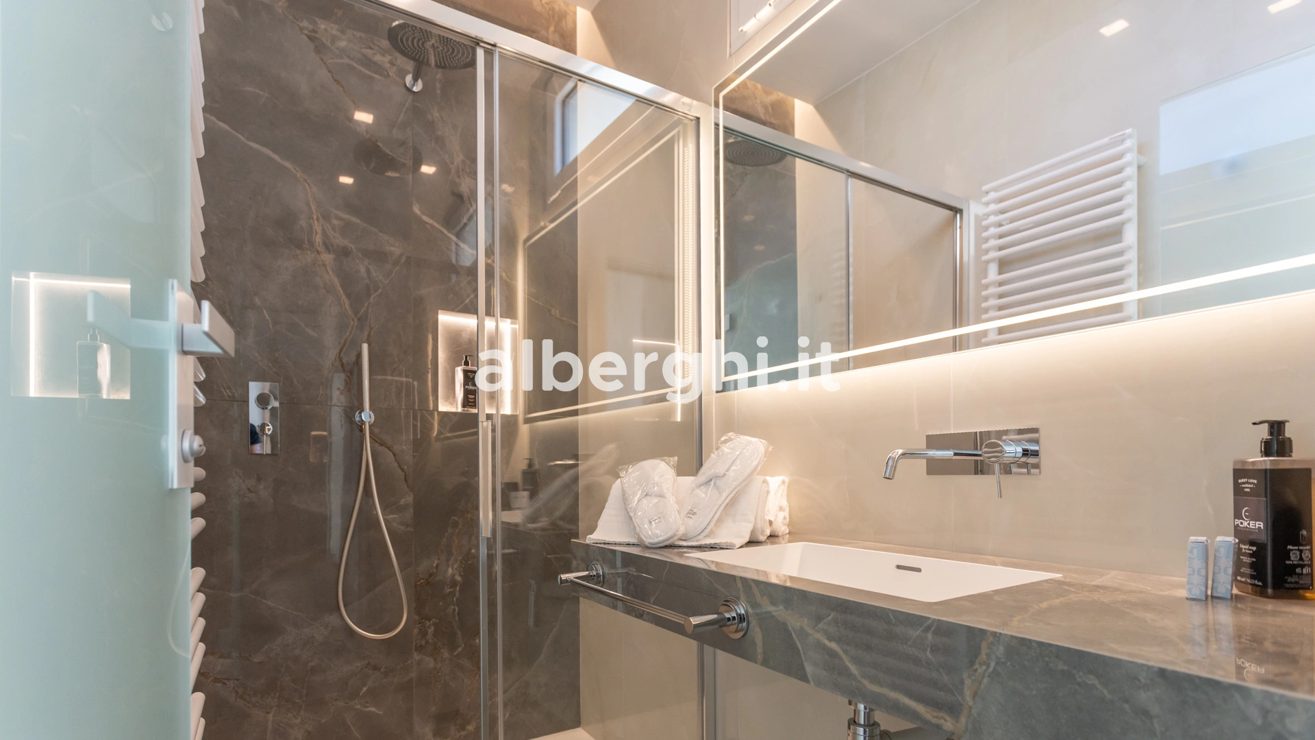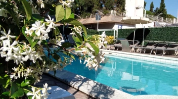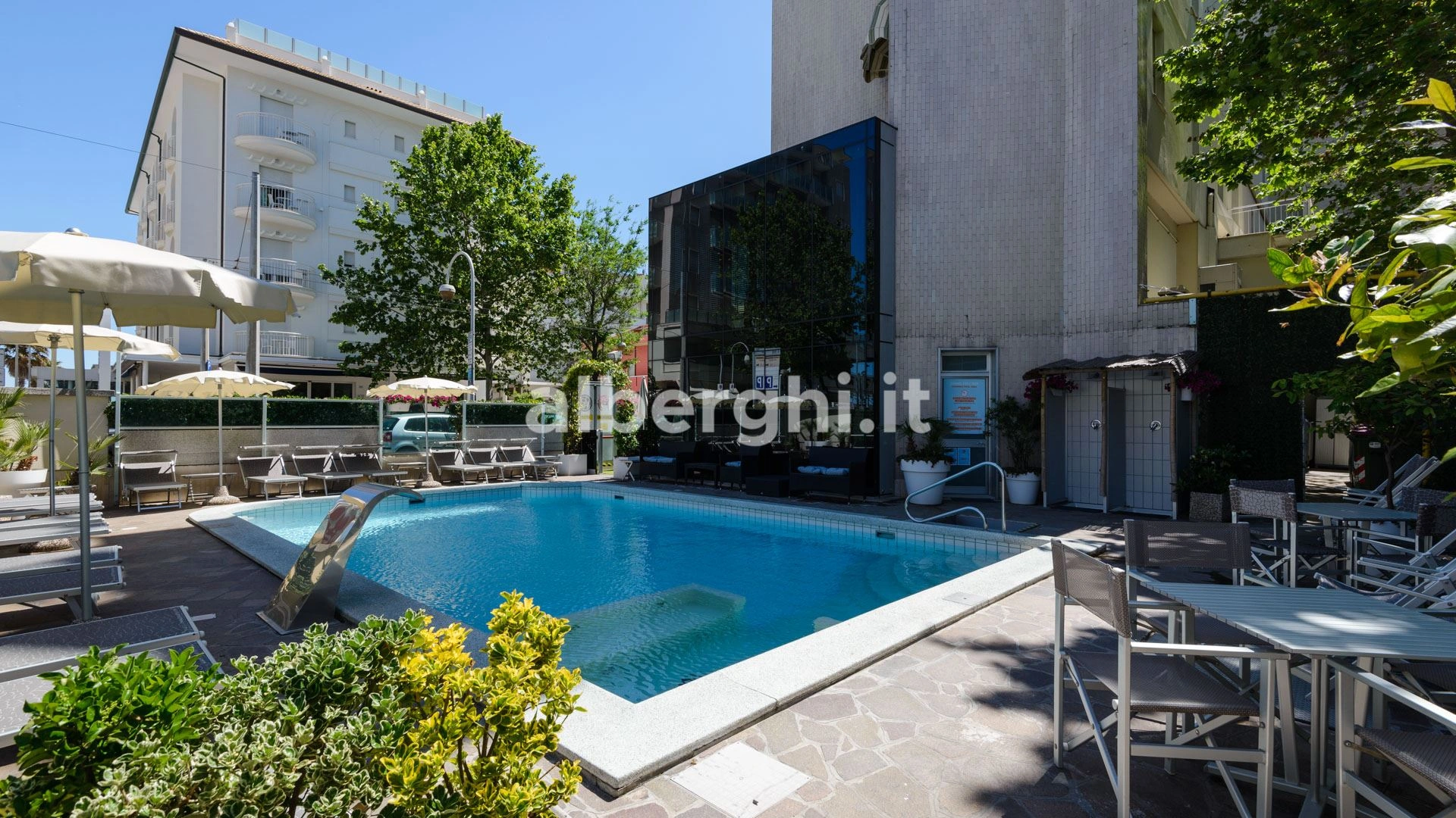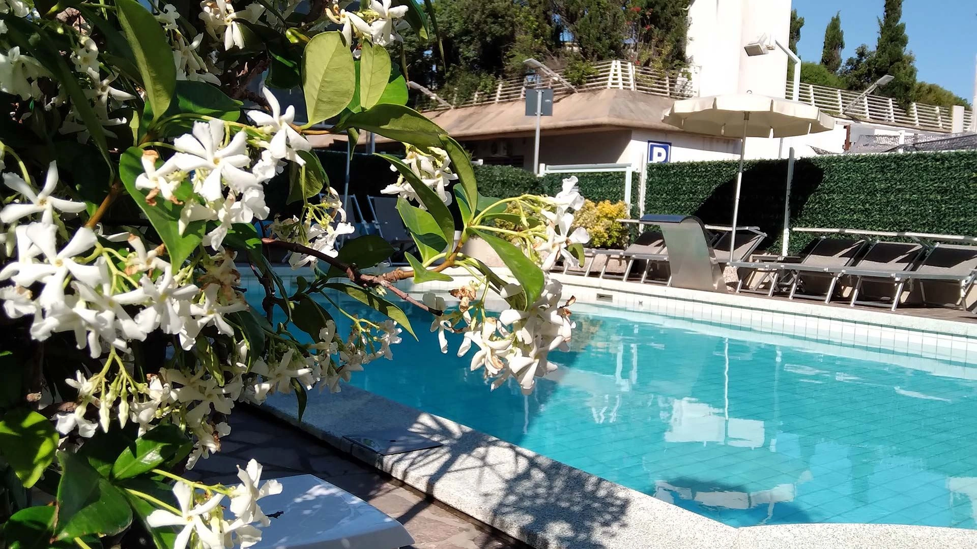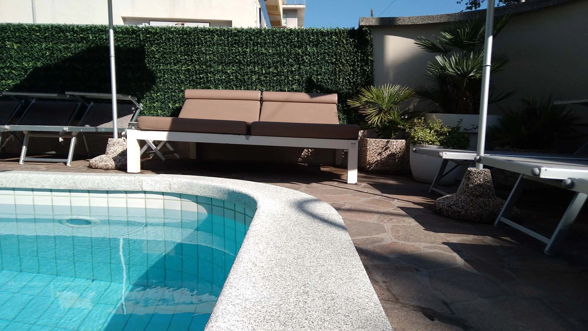 Nel giardino dell'hotel è presente una piscina profonda 140 cm con acqua riscaldata, idromassaggio per 5 persone, cascata d'acqua, sistema di idromassaggio cervicale e getto di bolle. Nell'area circostante, attrezzata a solarium, si possono consumare aperitivi.