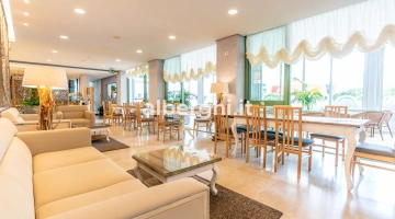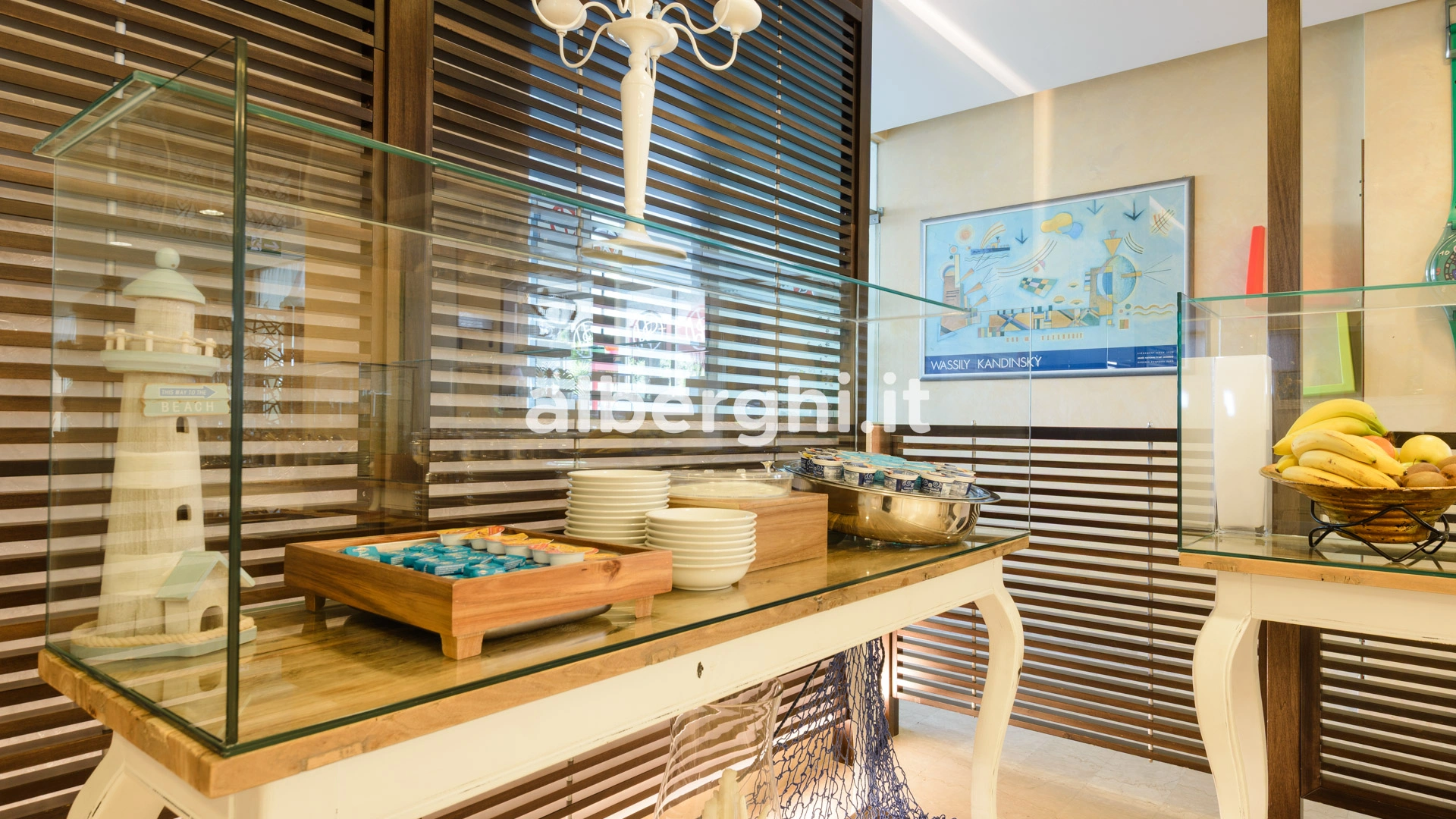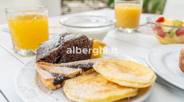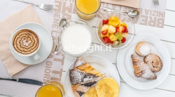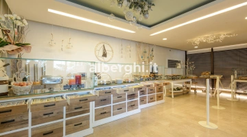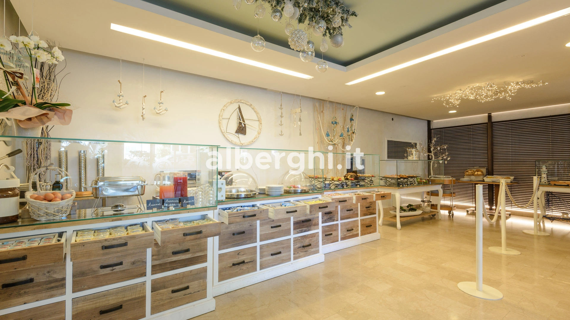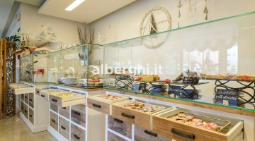 COLAZIONE: buffet dolce e salato con dolci fatti in casa, prodotti dietetici, biologici e senza glutine (confezionati). Al buffet, inoltre, ci saranno: frutta fresca, yogurt, uova, formaggi e salumi. Bevande calde di caffetteria verranno servite direttamente al tavolo.