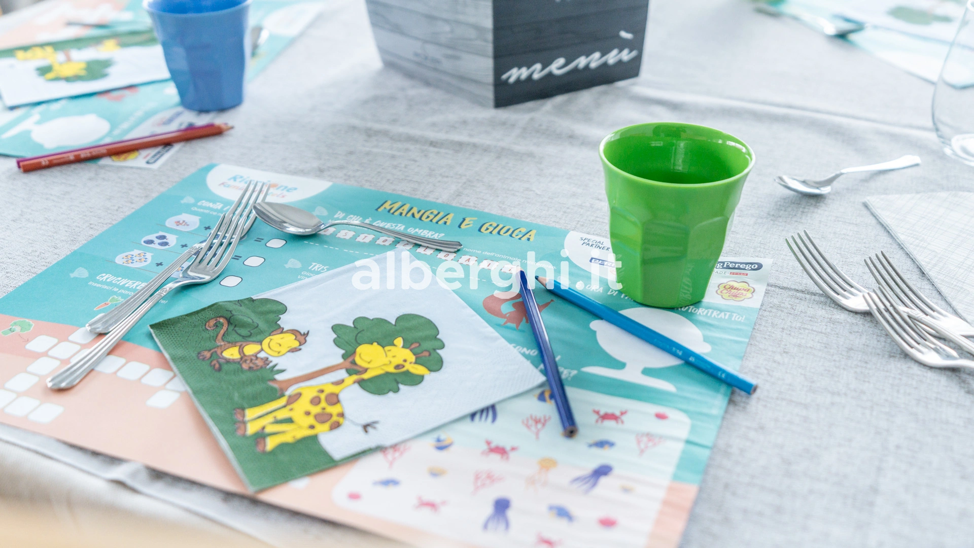 Ai pasti: baby menù, pappe, seggioloni al tavolo, cucinetta attrezzata. Animazione durante i pasti.