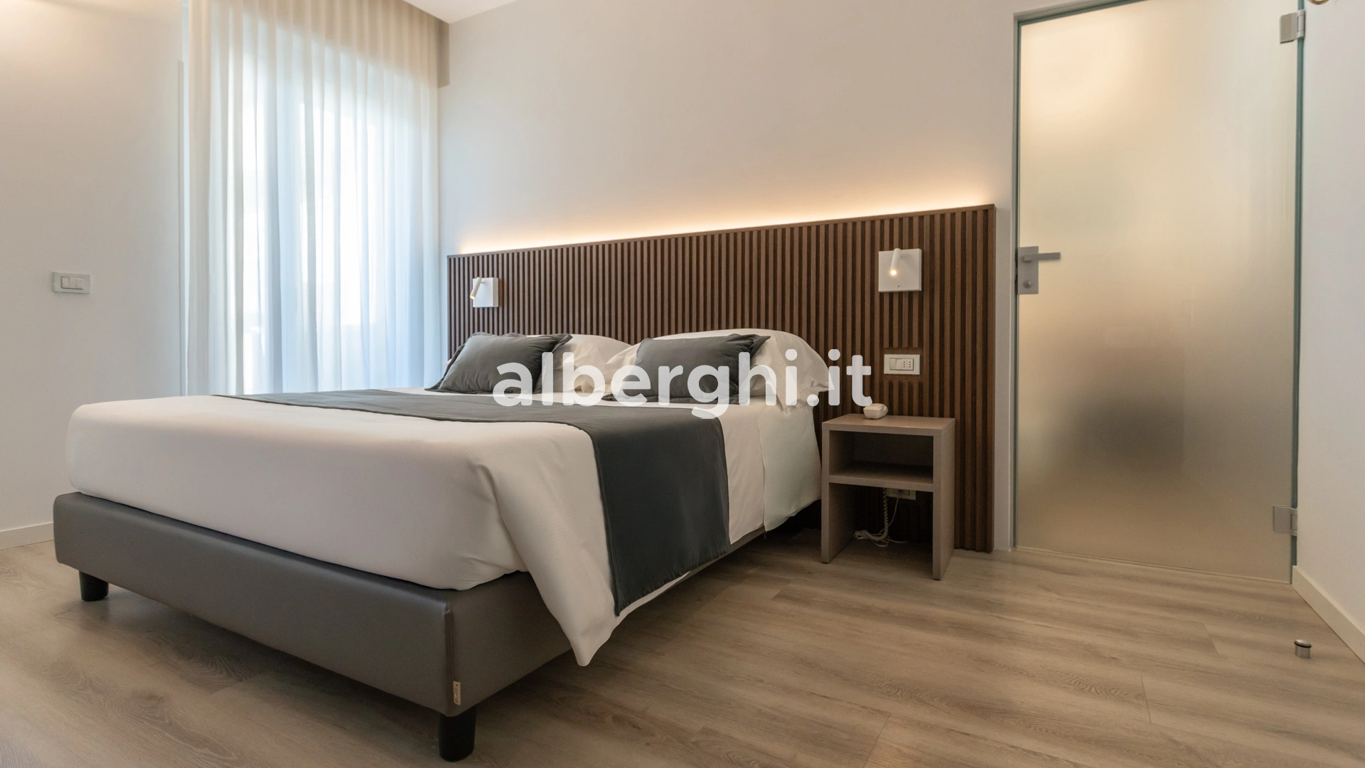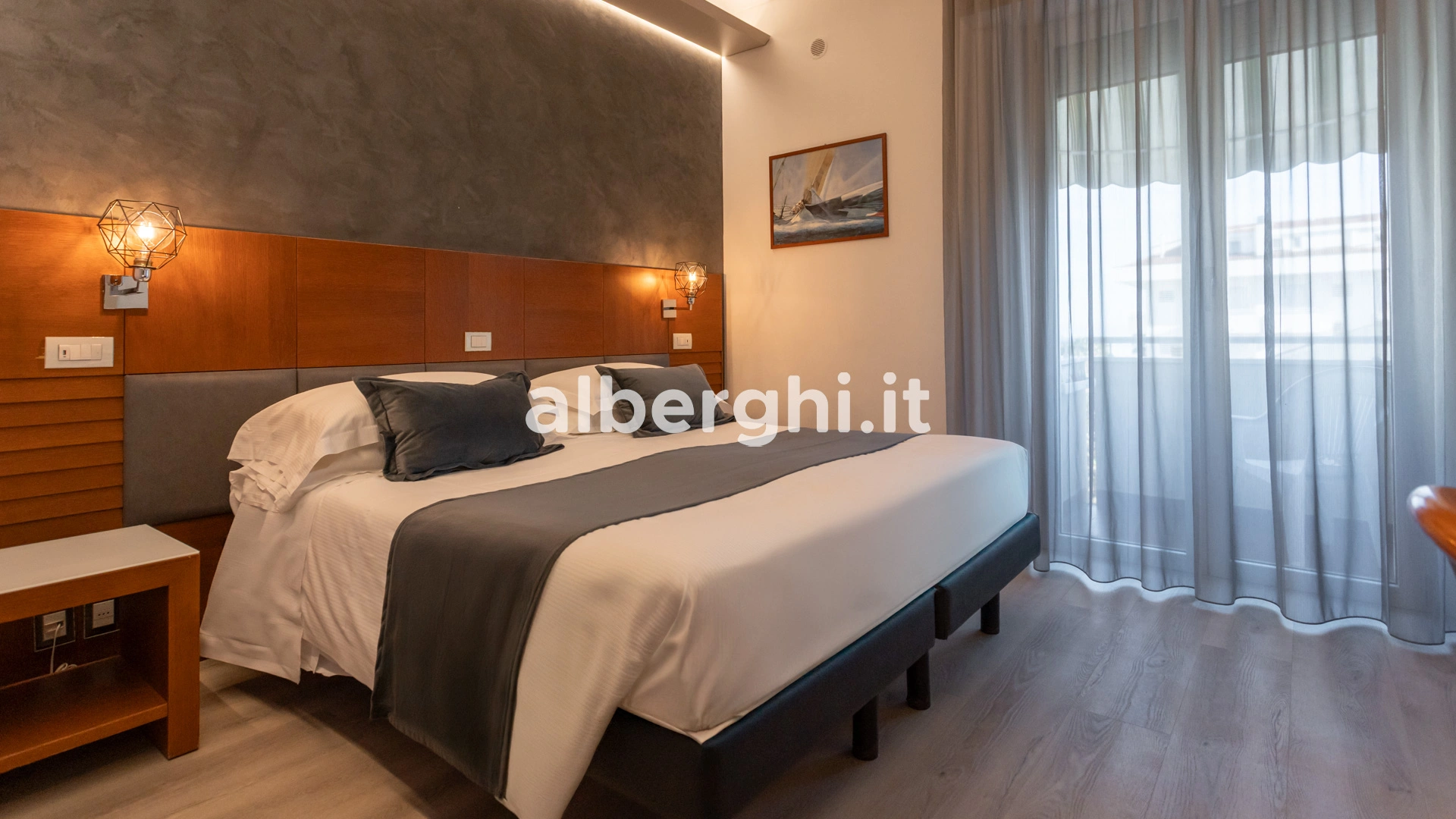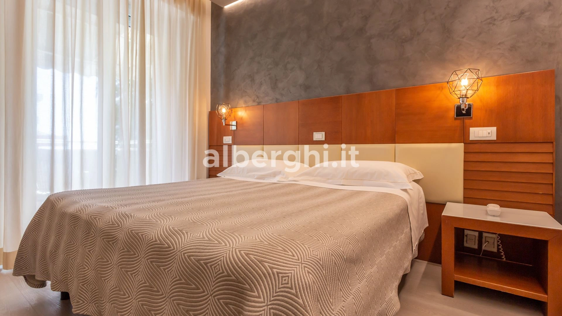 Le camere sono dotate di balcone, vista mare, aria condizionata, Wi-Fi fibra 100 Mbit/s, TV con canali sat, telefono, cassaforte, bagno con box doccia e phon. Il frigobar è rifornito solo d'acqua ed è disponibile a pagamento.