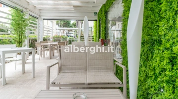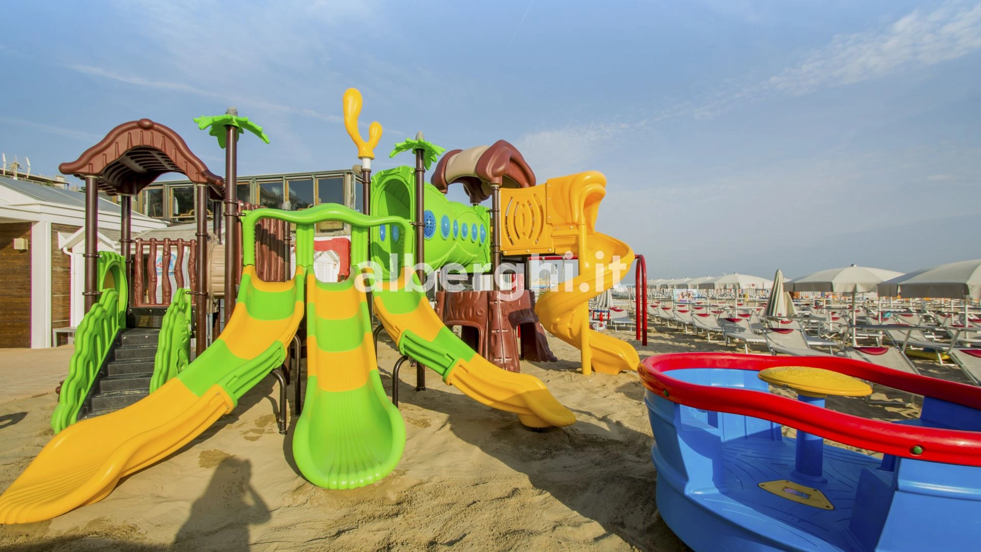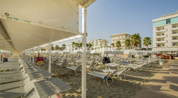 L'Hotel è convenzionato con il Bagno n.110, stabilimento balneare attrezzato con piscina riscaldata, idromassaggio, area massaggi, giochi per bambini, campi sportivi sulla sabbia, cassette di sicurezza, braccialetti identificativi per i bambini, area relax e angolo lettura. Chi soggiorna con specifici pacchetti (AI Spiaggia e AI Superior) può usufruire di: aperitivo settimanale in spiaggia, lezioni di Yoga e di Sup all'alba, possibilità di pranzo con con box lunch direttamente sotto l'ombrellone.