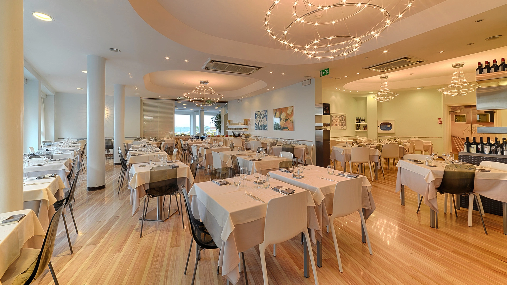 PRANZO E CENA: il ristorante “Nastro Azzurro” propone ricette tipiche romagnole e sperimentazioni creative. Viene proposto un menù a 4 scelte con pesce a pranzo e a cena, esaltati da una ricca selezione di vini locali. Pasta e dolci sono fatti in casa, le pietanze vengono servite al tavolo.