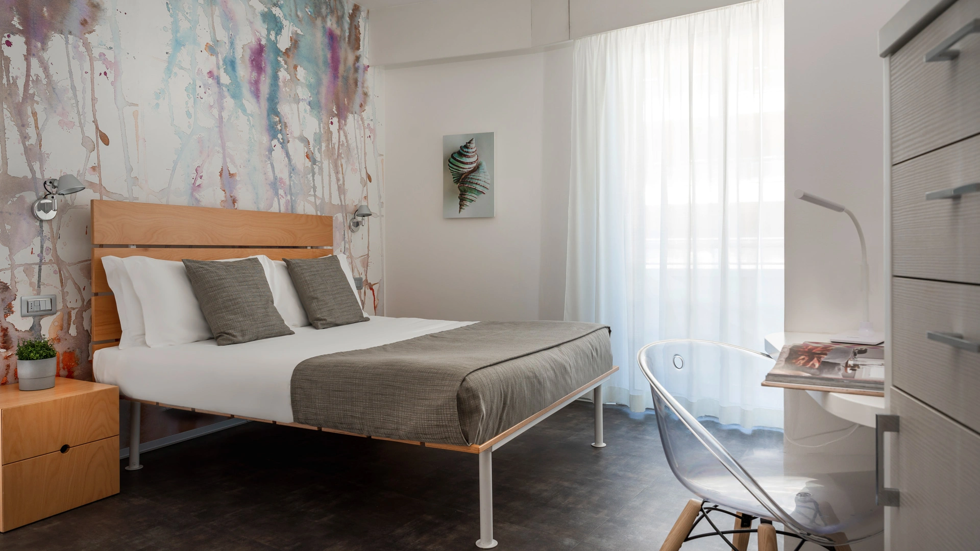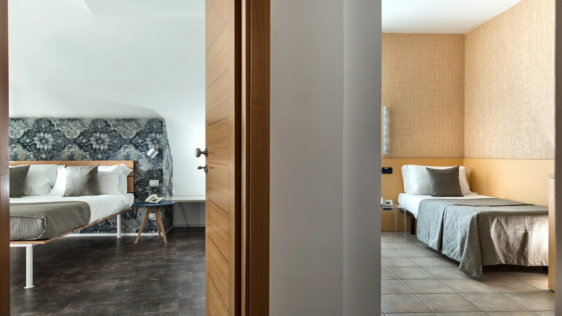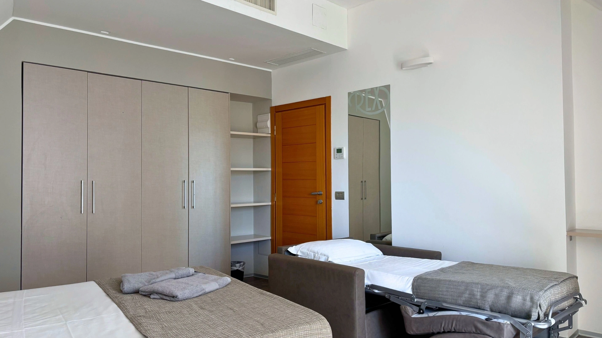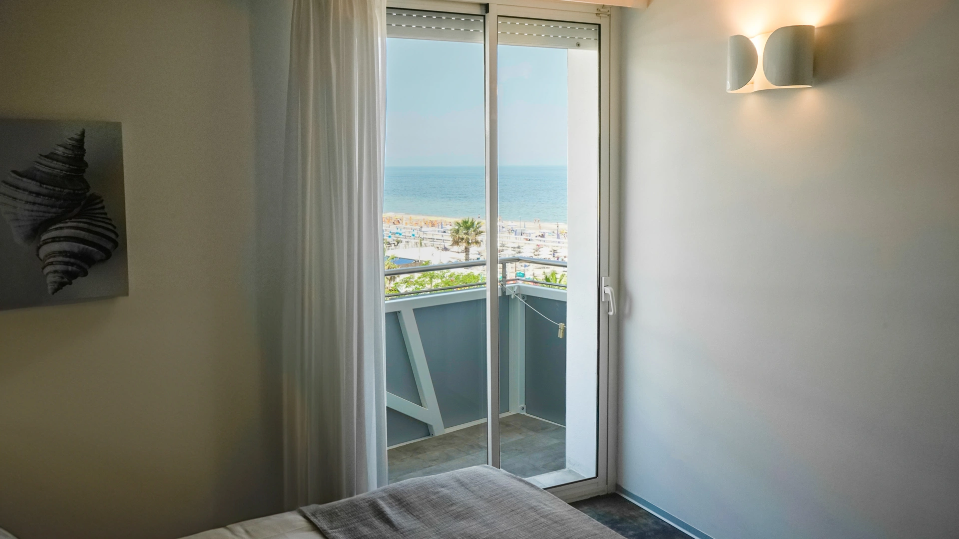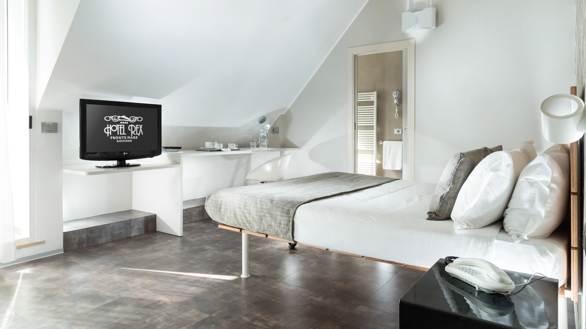 L’arredamento delle camere è ispirato all'immaginario felliniano e al tema marinaresco del Rex. Tutte sono dotate di balcone, la maggior parte con vista sul mare, TV sat LCD, Wi-Fi fibra 200 Mbit/s, aria condizionata, serranda elettrica, cassaforte, telefono, frigobar, drink di benvenuto, bagno con box doccia.