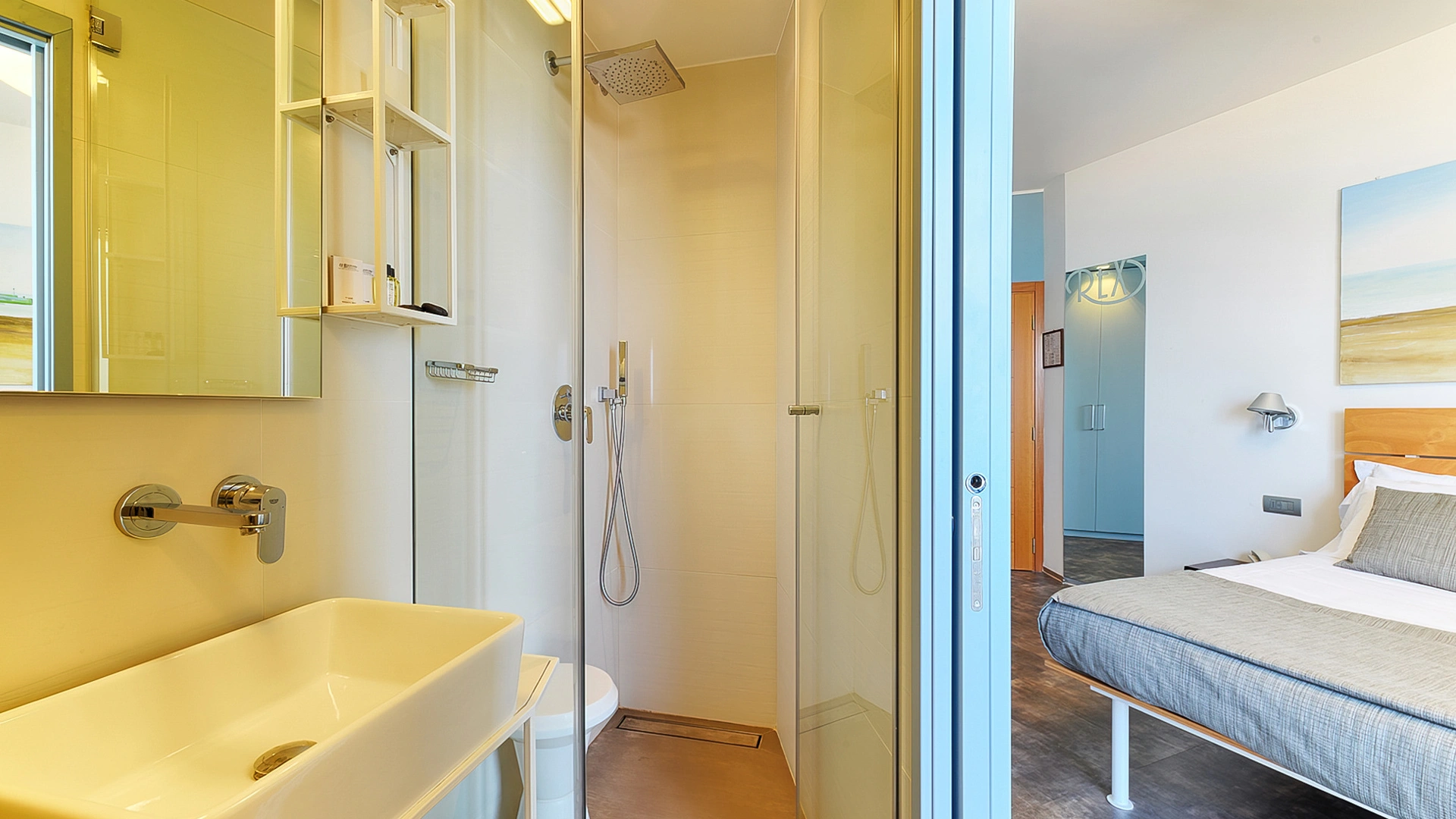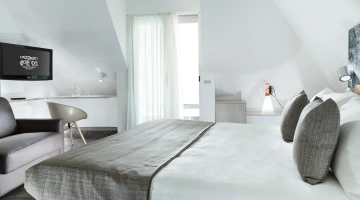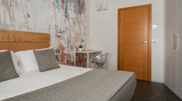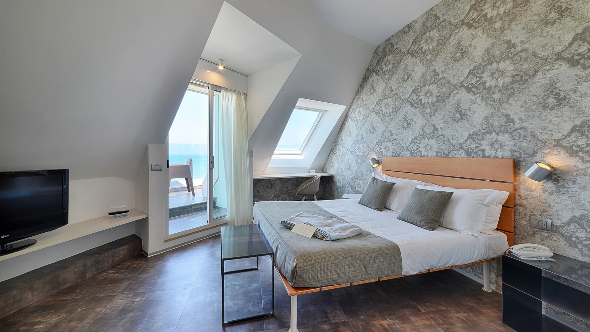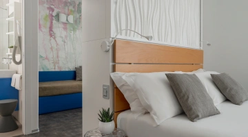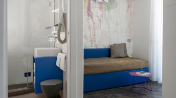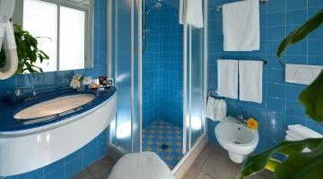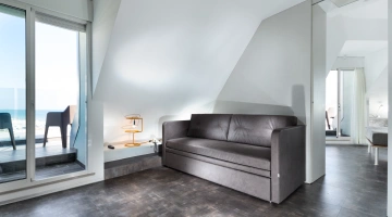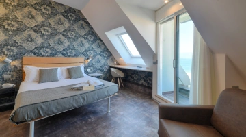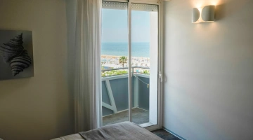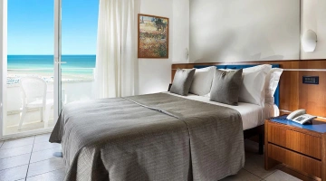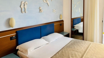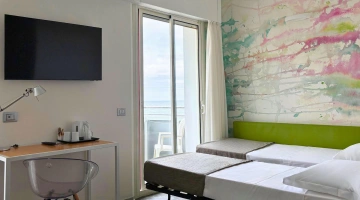JUNIOR SUITES, SUITES: gli ambienti sono luminosi, gli arredi di design e il balcone offre una vista panoramica sul mare. Misurano dai 18 ai 30 mq escluso il bagno, possono ospitare fino a 5 persone e un bimbo in culla. Servizi inclusi: accappatoio, frigobar con consumazioni gratuite, bollitore in camera con te e tisane, quotidiano preferito tutte le mattine, telo mare in omaggio (minimo 6 giorni), caffetteria e bibite analcoliche gratuite al bar dell’albergo.