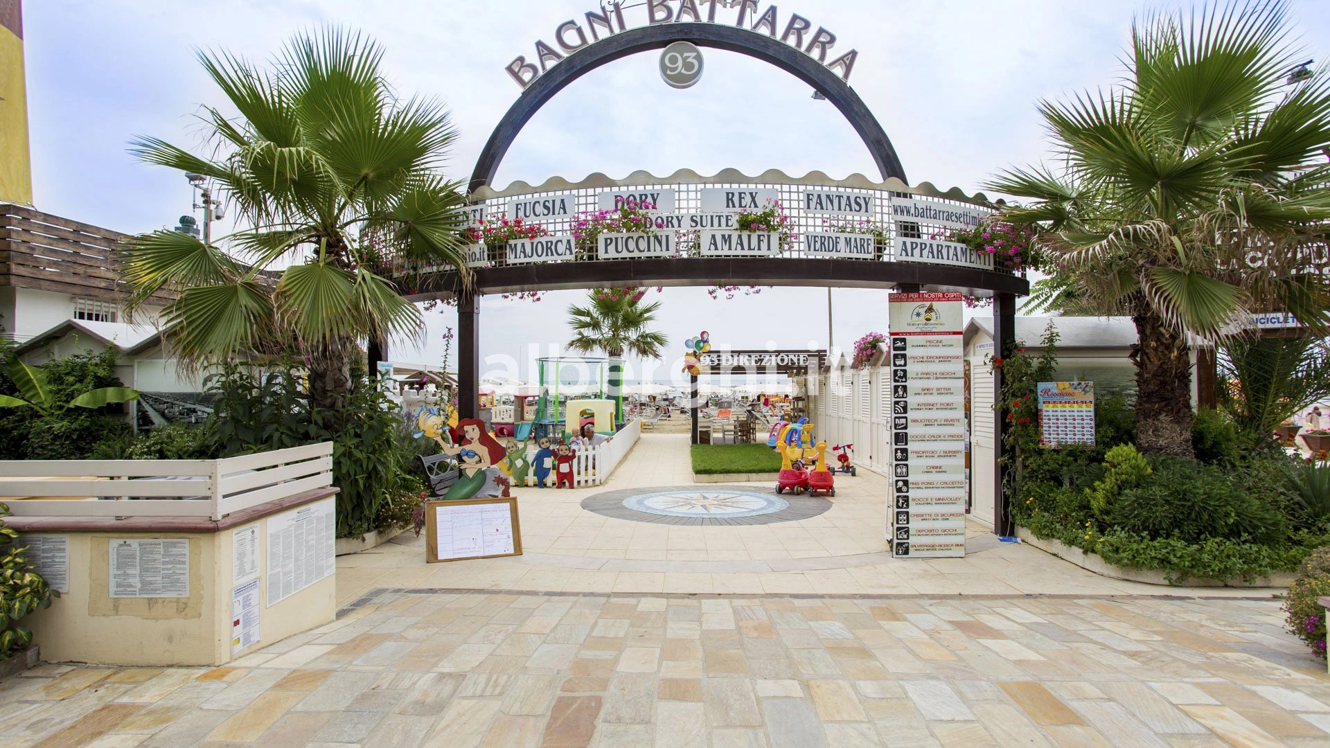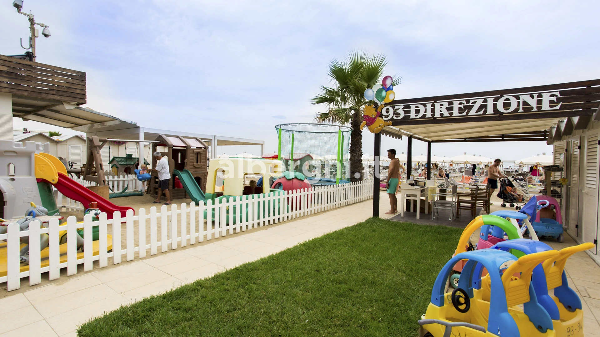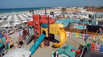 In spiaggia: parco giochi, baby piscina, nursery e braccialetto antismarrimento.