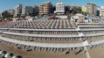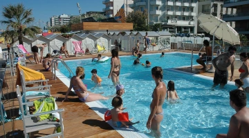 L'hotel è convenzionato con la spiaggia Bagno n.93, che dispone di una grande piscina, di vasca per bambini con acqua profonda 60 cm e due vasche idromassaggio, parco giochi per bambini con baby sitter e nursery.