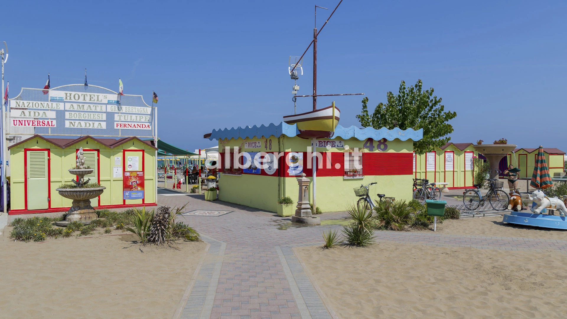 L'hotel è convenzionato con il Bagno n.48, Bagno n.49 e il Bagno n.50. Tra i servizi disponibili: area giochi per bambini, baby/mini/junior club, animazione.