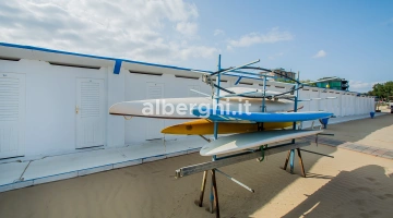 L'albergo è convenzionato con lo stabilimento balneare Bagno Azzurro n.12, dotato di lettini, ombrelloni, cabine e campi di beach volley e beach tennis. Per i più piccoli sono disponibili aree giochi attrezzate e angolo nursery.