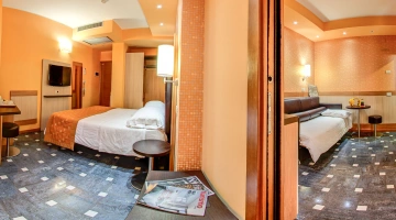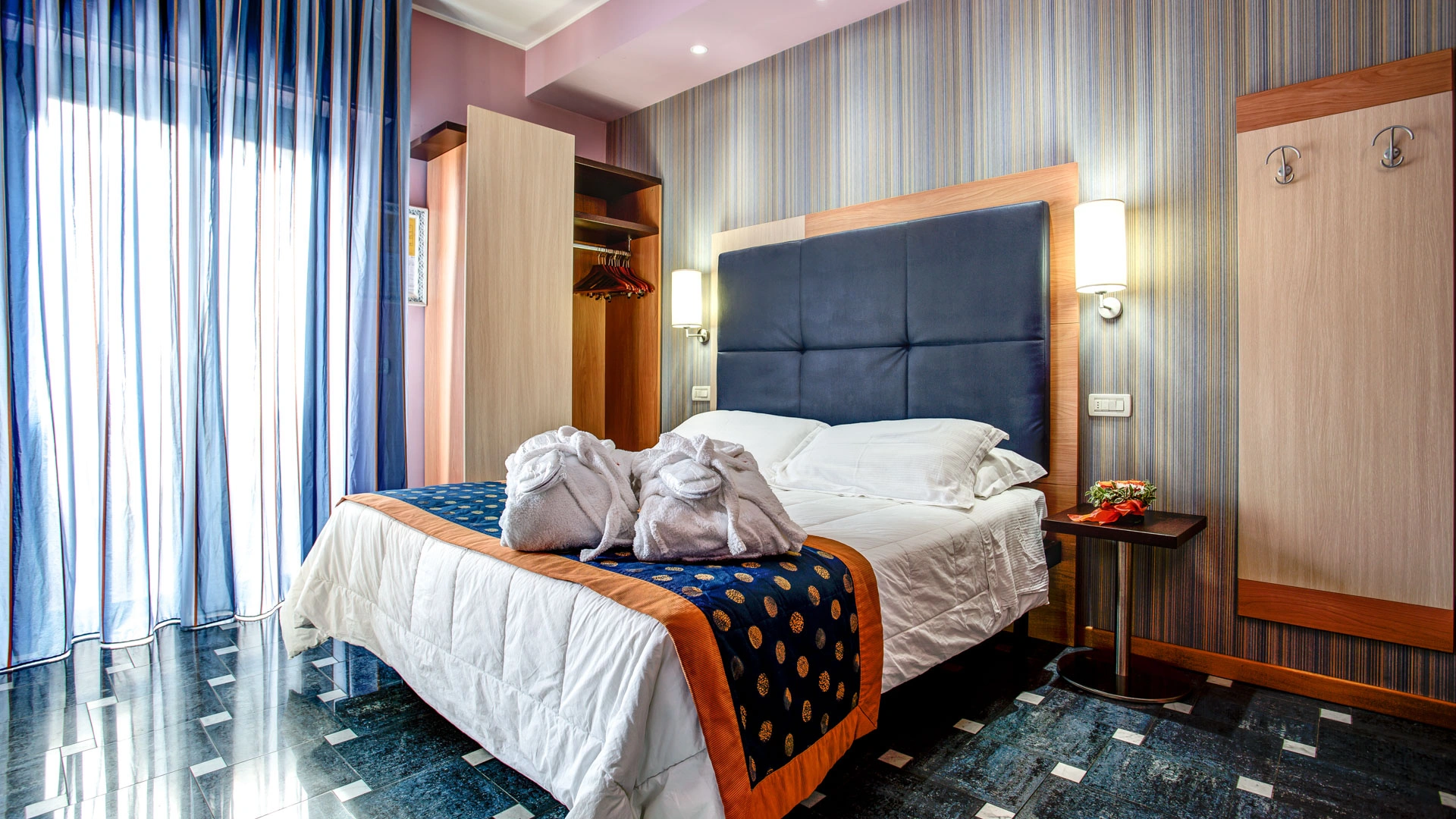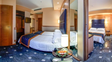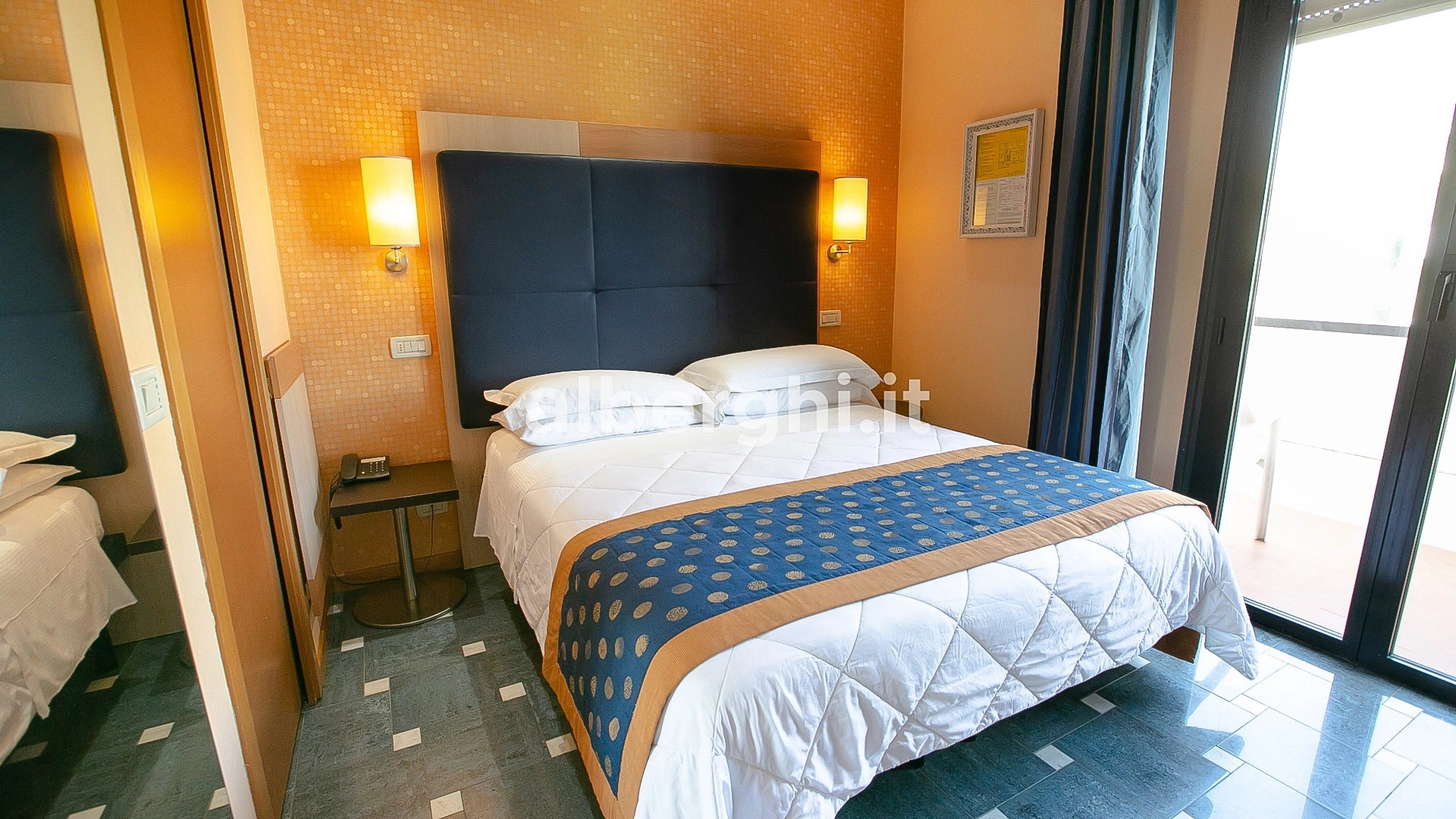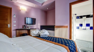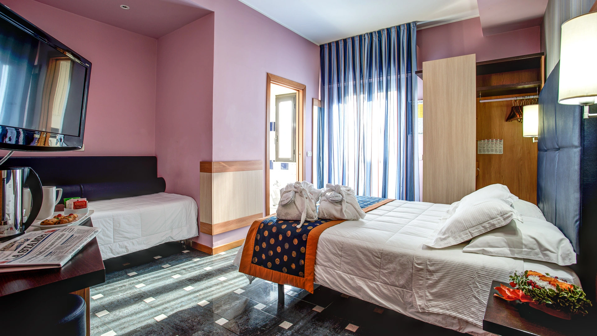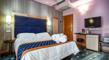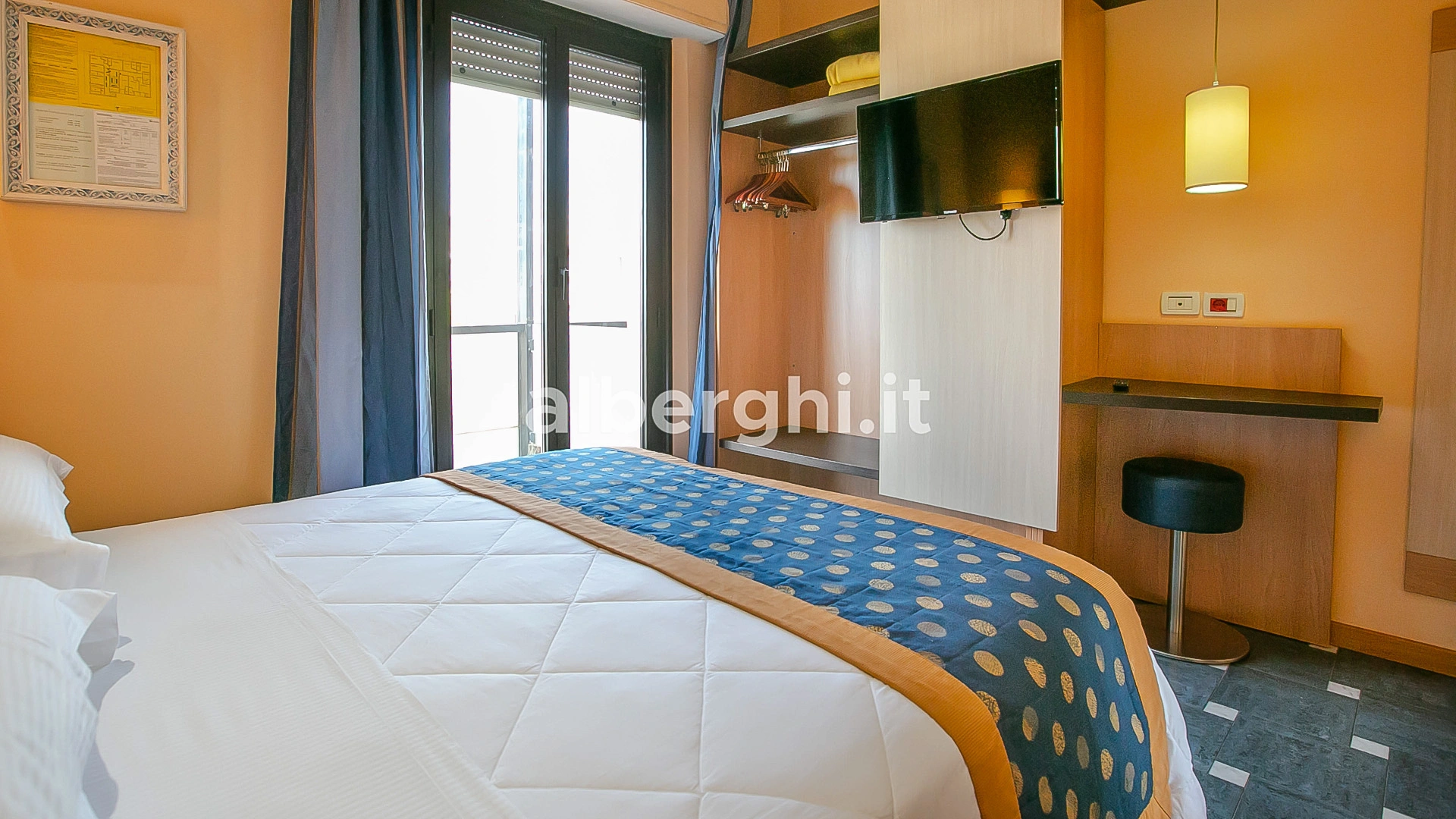 Completamente rinnovate tutte le stanze dispongono di balcone, climatizzatore, frigobar, cassaforte, telefono, Wi-Fi fibra, TV sat LCD, bagno con box doccia, asciugacapelli e set di cortesia. Vista mare su richiesta, con supplemento.