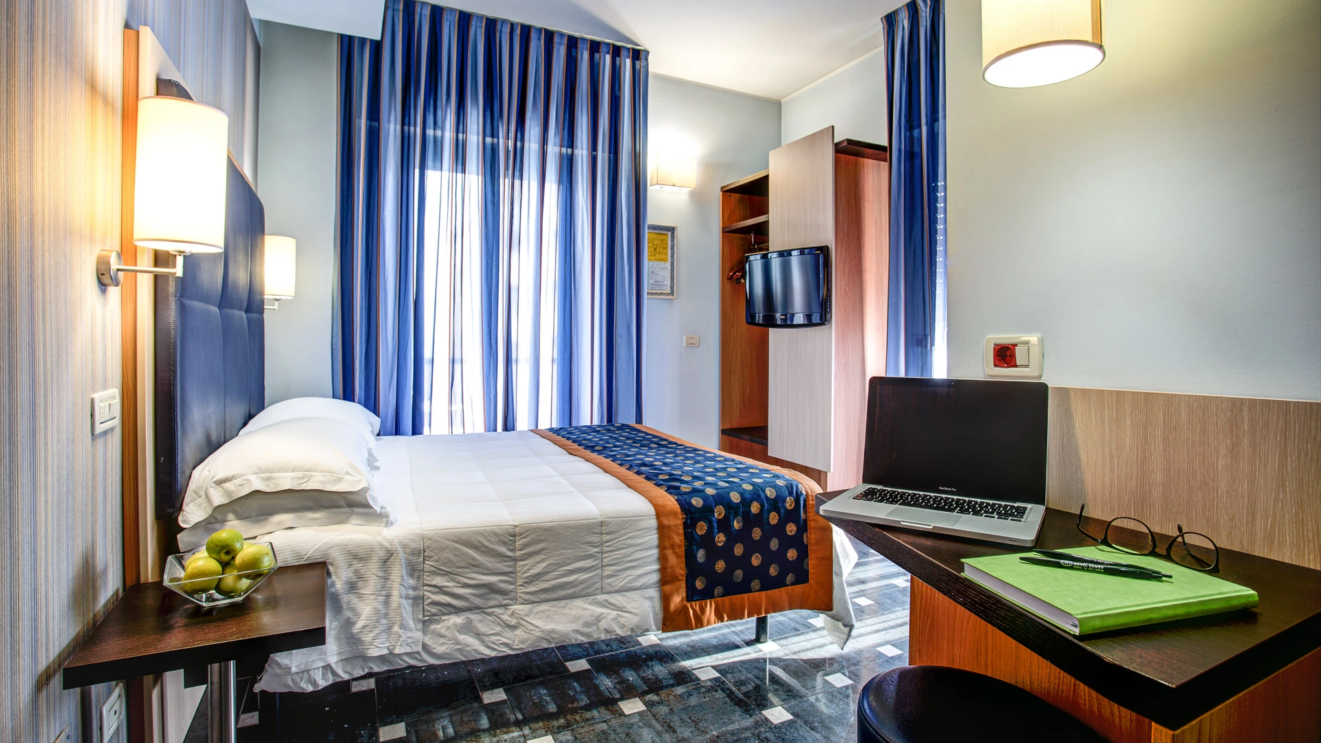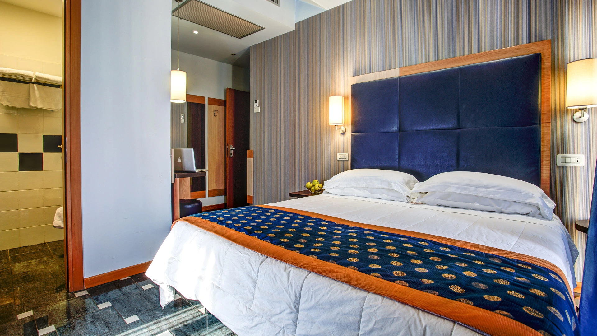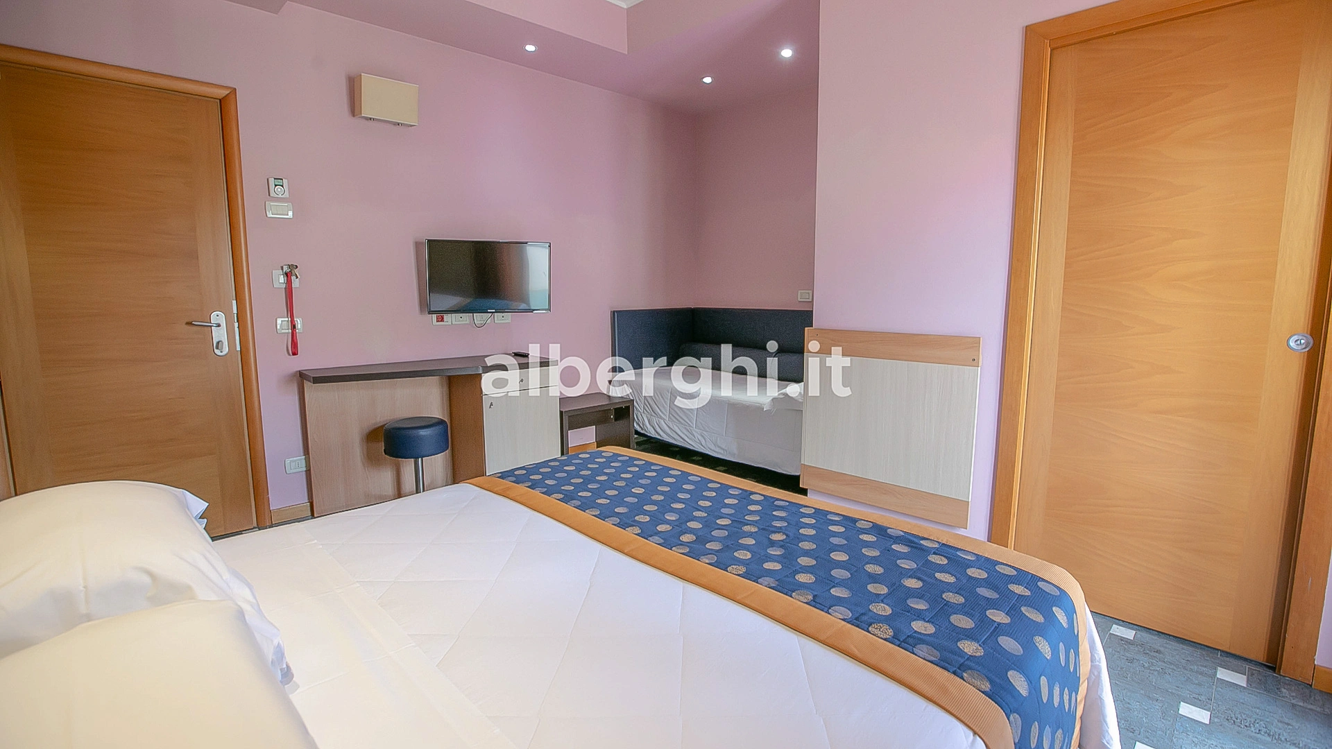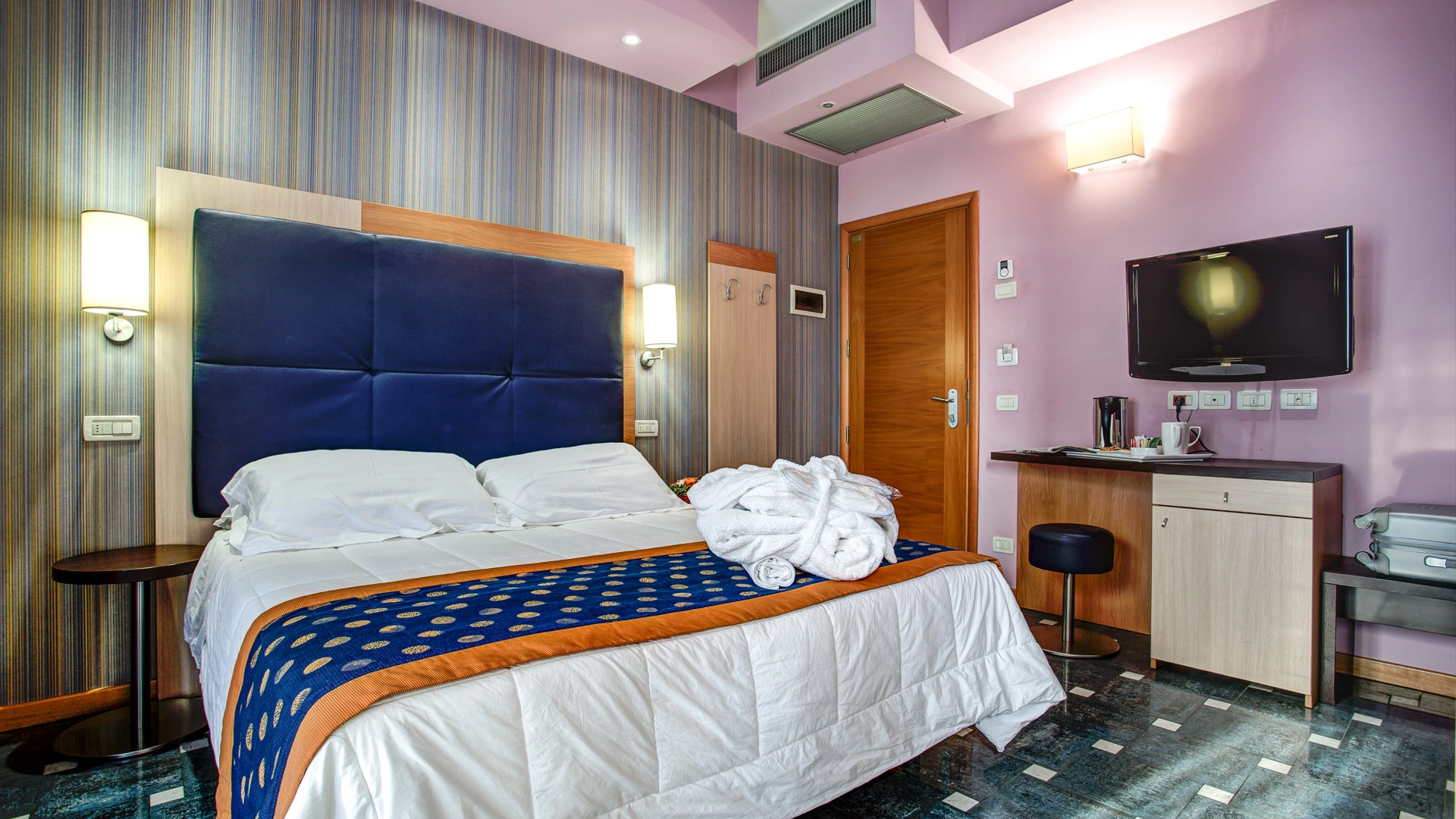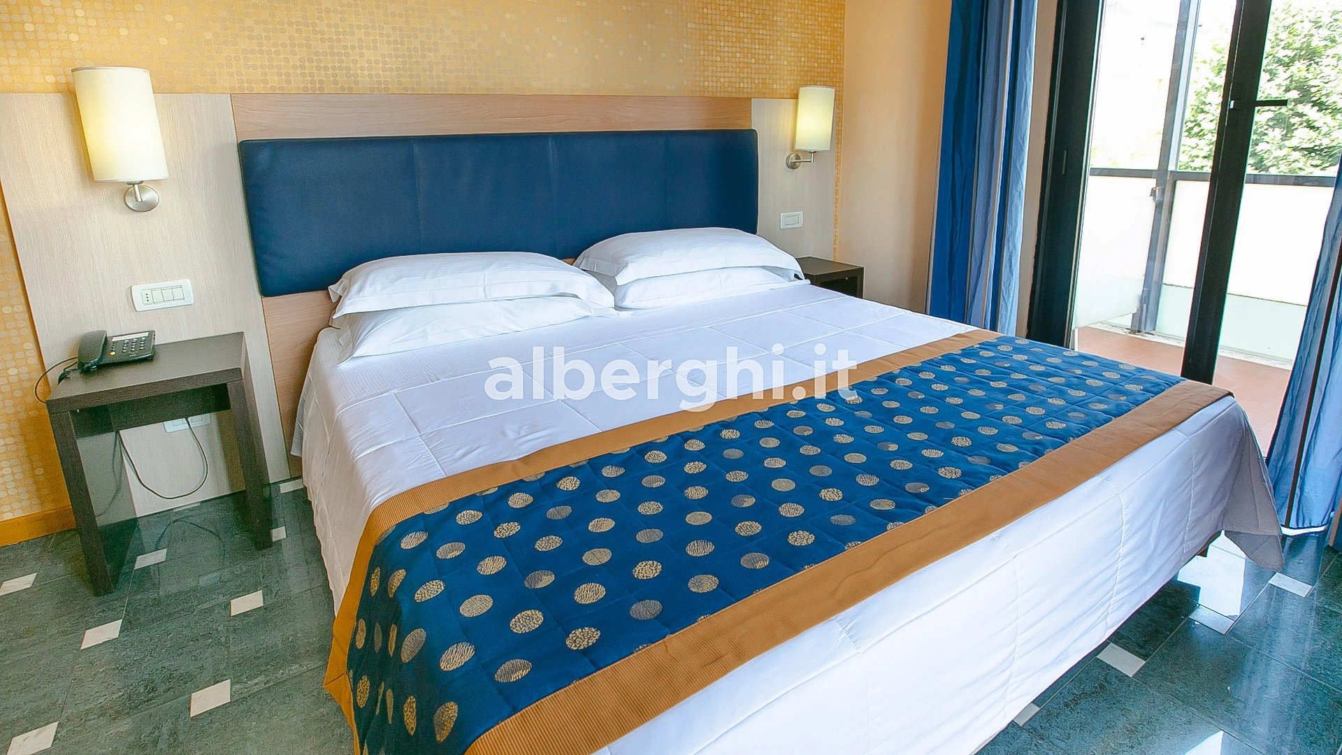 Completamente rinnovate tutte le stanze dispongono di balcone, climatizzatore, frigobar, cassaforte, telefono, Wi-Fi fibra, TV sat LCD, bagno con box doccia, asciugacapelli e set di cortesia. Vista mare su richiesta, con supplemento.