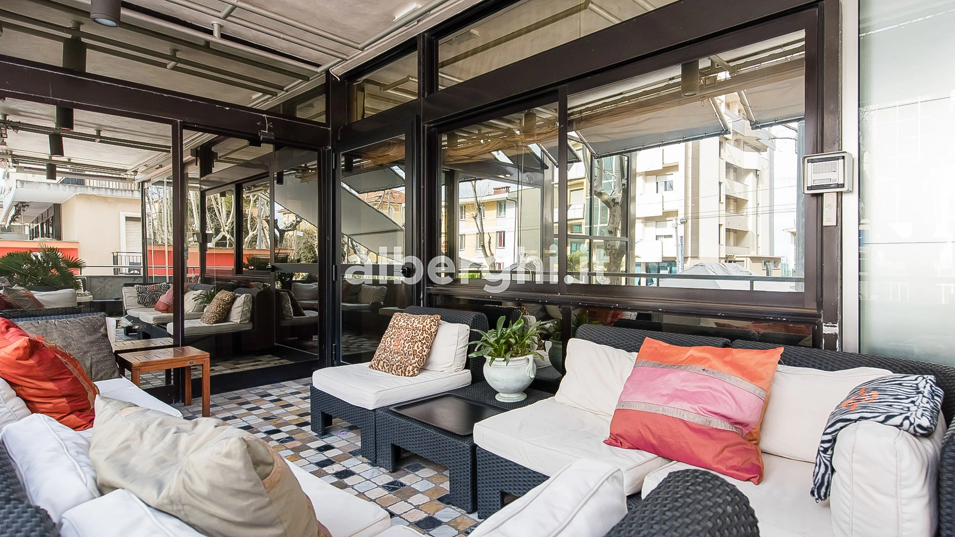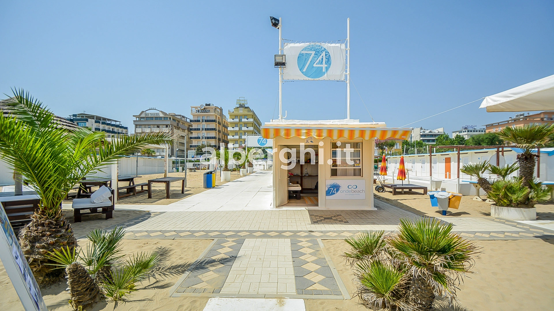 Si trova nella zona di Marina Centro, affacciato sulla passeggiata di Viale Regina Elena. La spiaggia è raggiungibile a piedi in un paio di minuti.