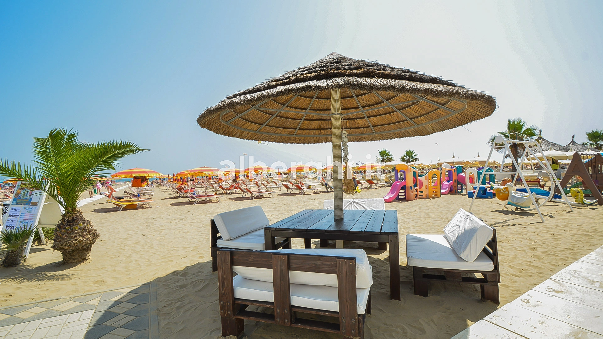 In spiaggia: animazione, area giochi.