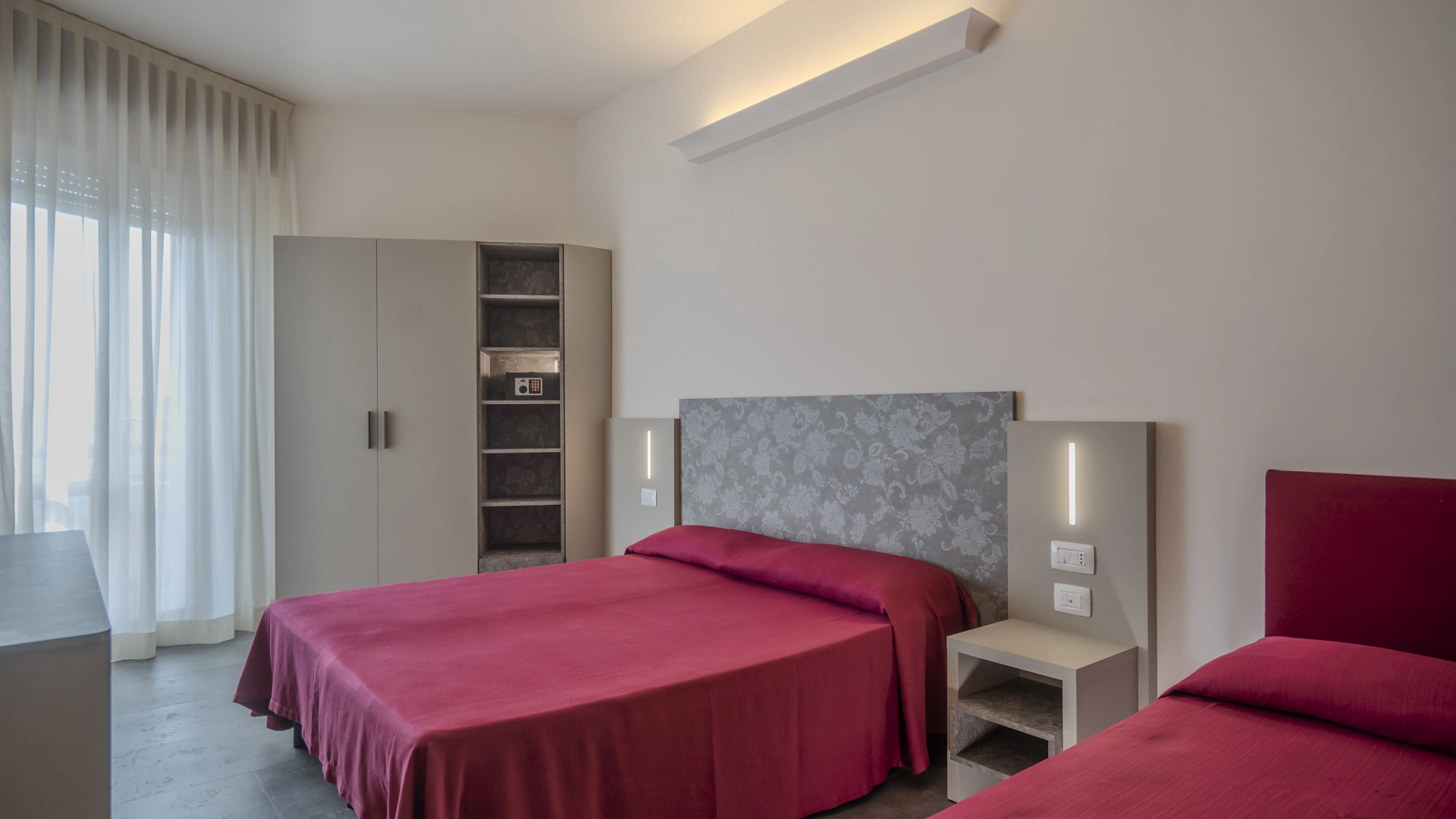 COMFORT PLUS SUPERIOR: si trovano solo al terzo piano con ampi bagni e arredi completamente rinnovati. Ai servizi base si aggiungono: due accappatoi in uso per l'intero soggiorno, bevande di benvenuto in omaggio al frigobar e borsa mare. Le camere quadruple family sono particolarmente ampie: quasi 17 mq con bagni di 4.50 mq.