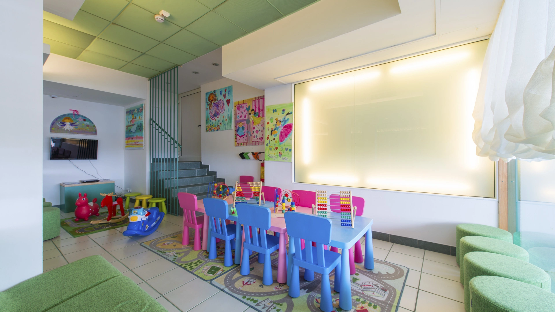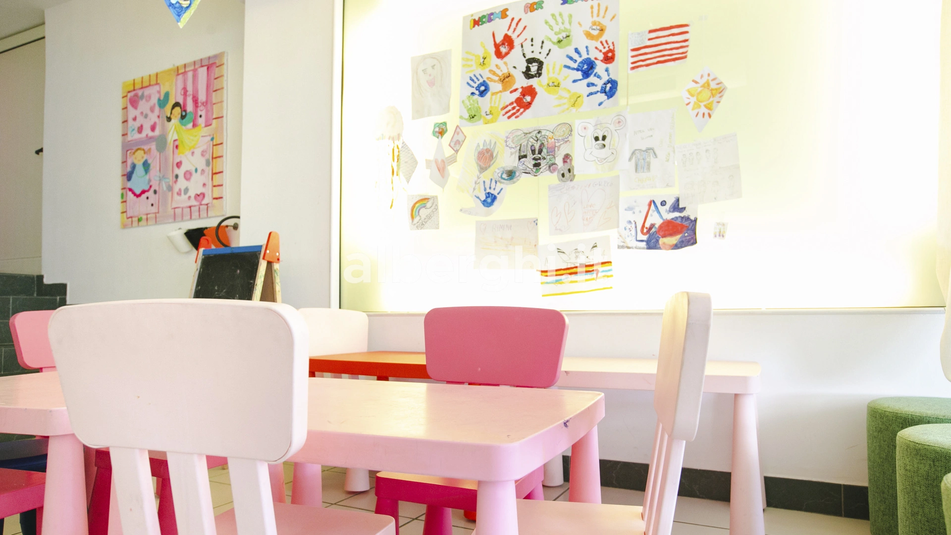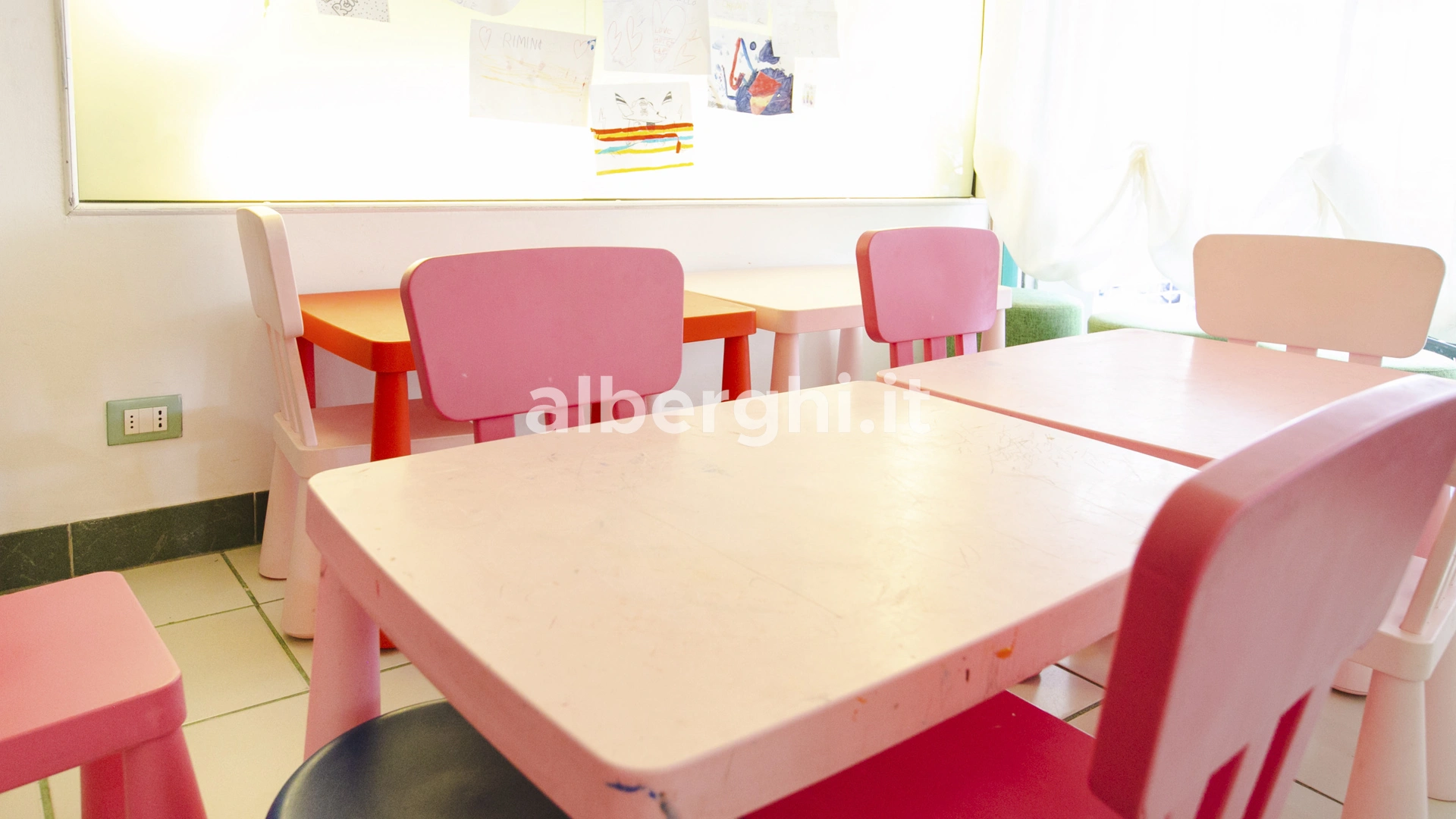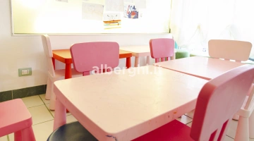 Ai pasti: animazione, baby menù, piattini, seggiolini, angolo per cottura con scaldabiberon e cucinetta attrezzata. Animazione durante i pasti.