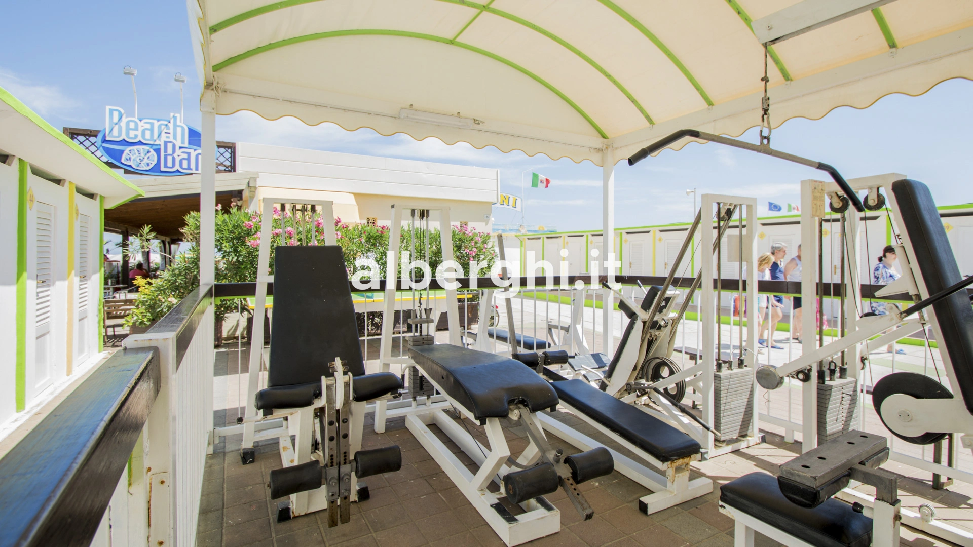 L'albergo è convenzionato con il Bagno n.108 Angelo e il Bagno n.109 Tony, situati proprio di fronte all'hotel, che offrono servizi adeguati a coppie, famiglie e gruppi di amici. A disposizione degli ospiti: campi da beach volley e beach tennis, parco giochi recintato e attrezzato con tappeto elastico, scivoli e altalene, animazione giornaliera, palestra, ping-pong e bocce, docce calde, pedalò e canoe, area relax e lettura con giochi da tavolo e carte da gioco, animazione con tornei sportivi, risveglio muscolare e acquagym, feste serali con musica.
