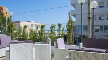 QUALITY PLUS: camere completamente rinnovate negli arredi e situate nell'attico dell'hotel con terrazza panoramica arredata con poltroncine e tavolino, bevande di benvenuto in omaggio nel frigobar, telo mare e borsa anch'essi in omaggio. Due accappatoi in uso per l'intero soggiorno.
