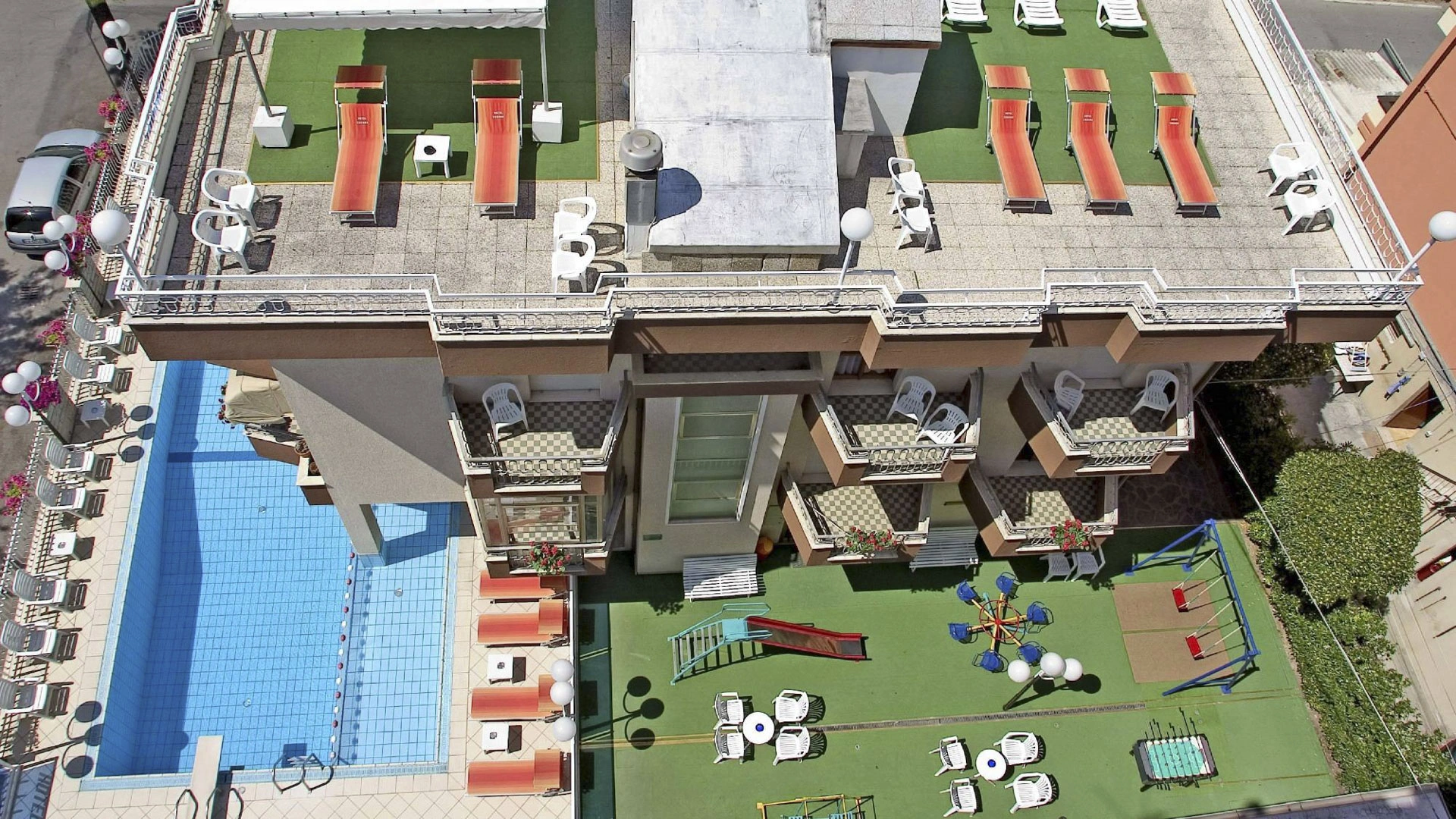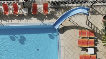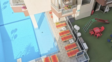 L'hotel dispone di un'ampia piscina esterna (74 mq) con area per bambini profonda 70 cm. La vasca è circondata da una zona solarium con lettini, con area giochi per bambini adiacente.