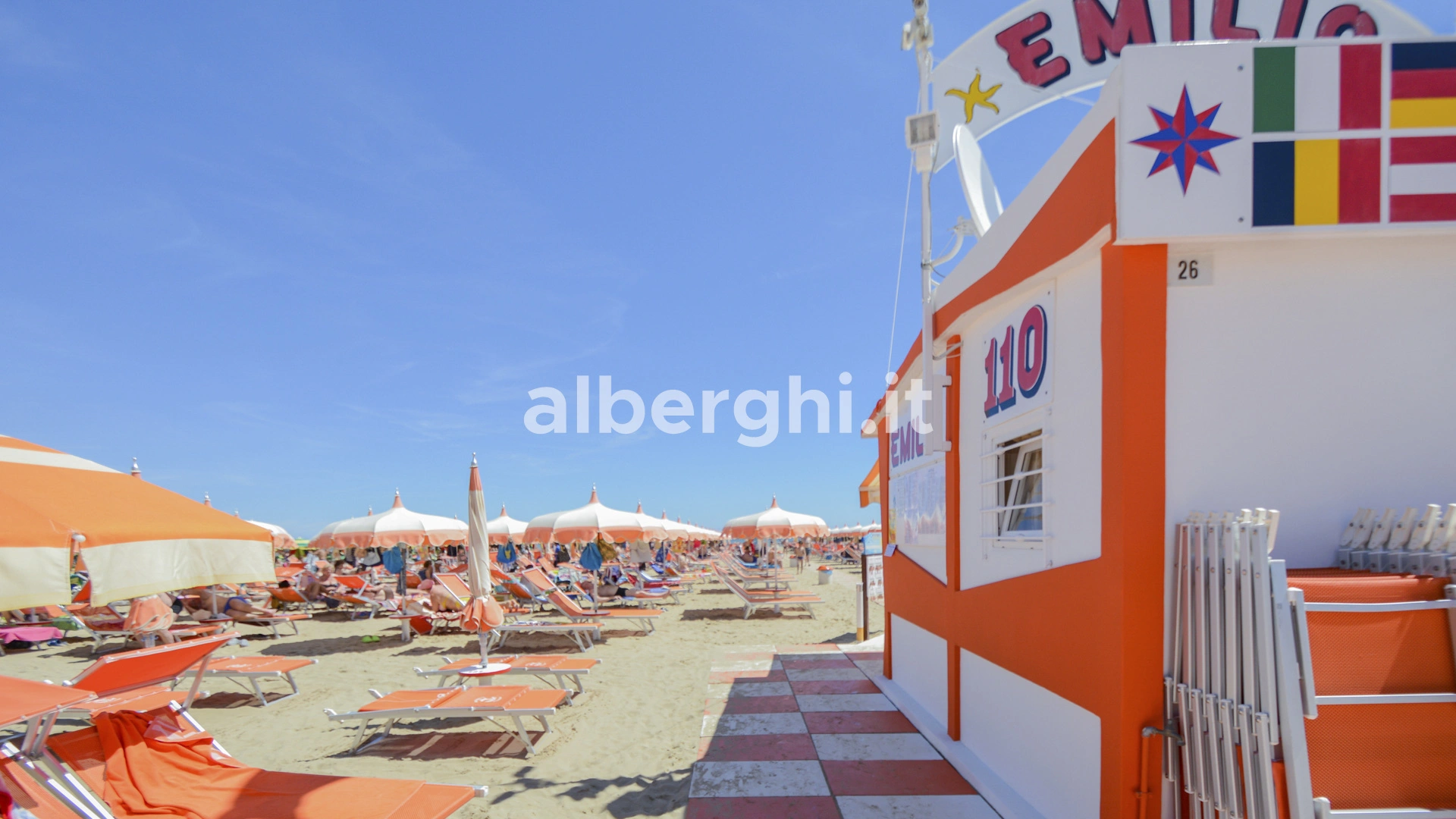 L'hotel è convenzionato con il Bagno Emilio n.110, dove gli ospiti trovano servizi specifici e cabine private.