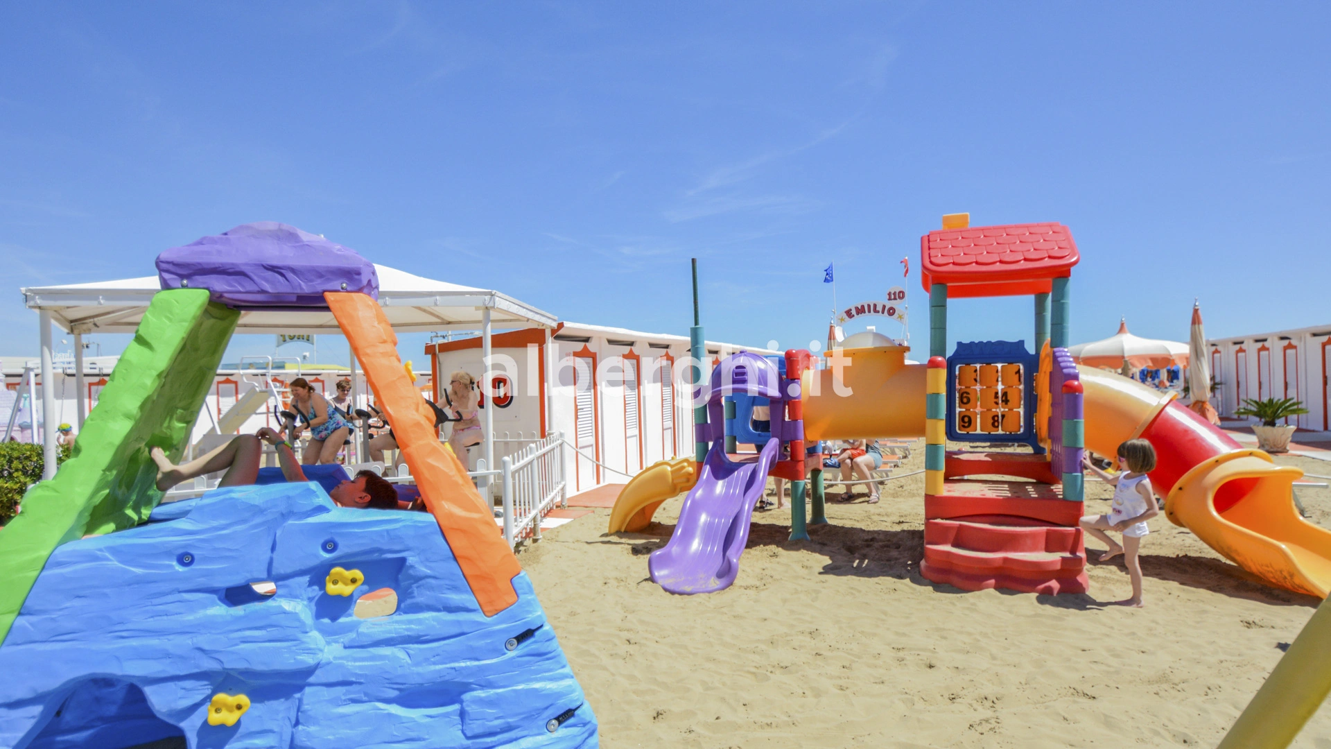 In spiaggia: area giochi, animazione.