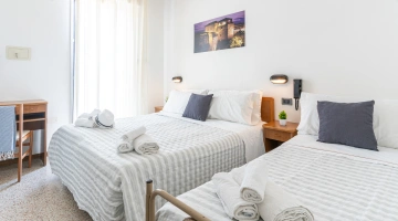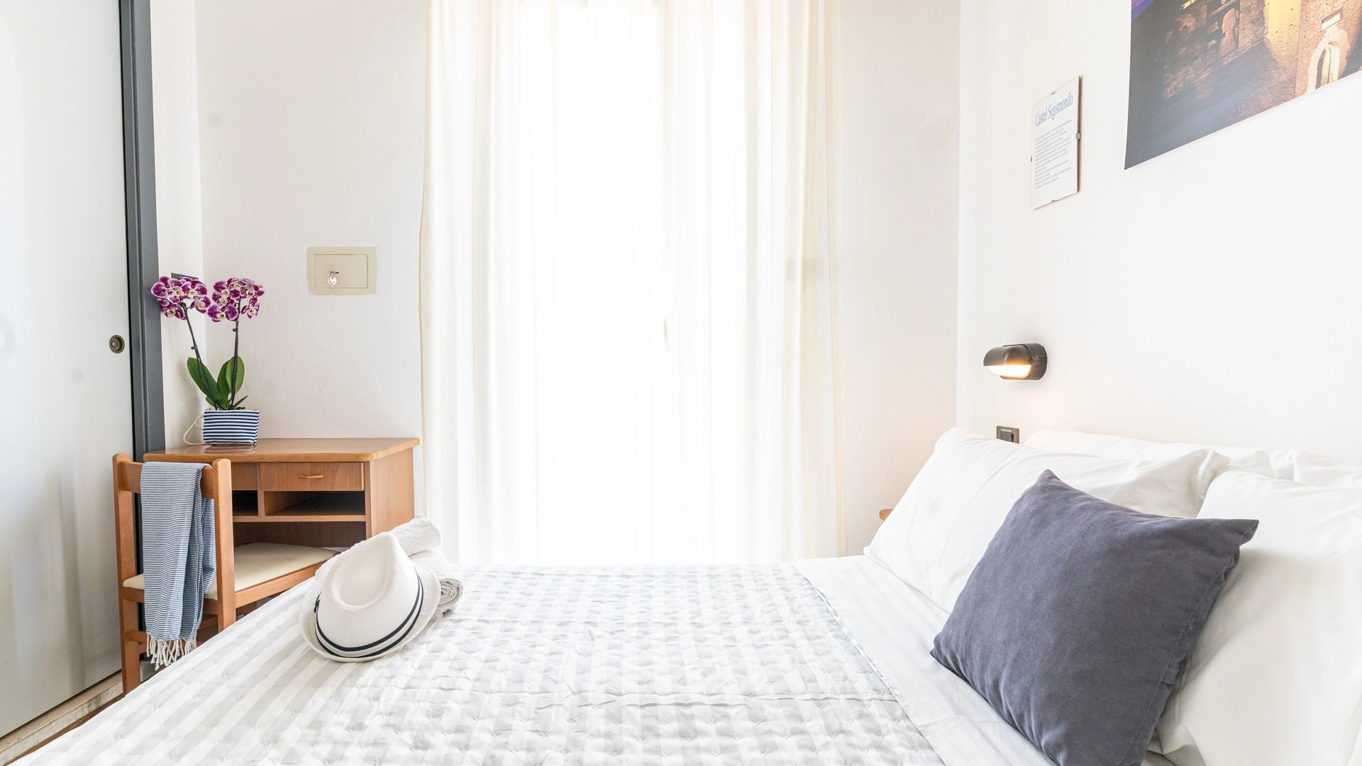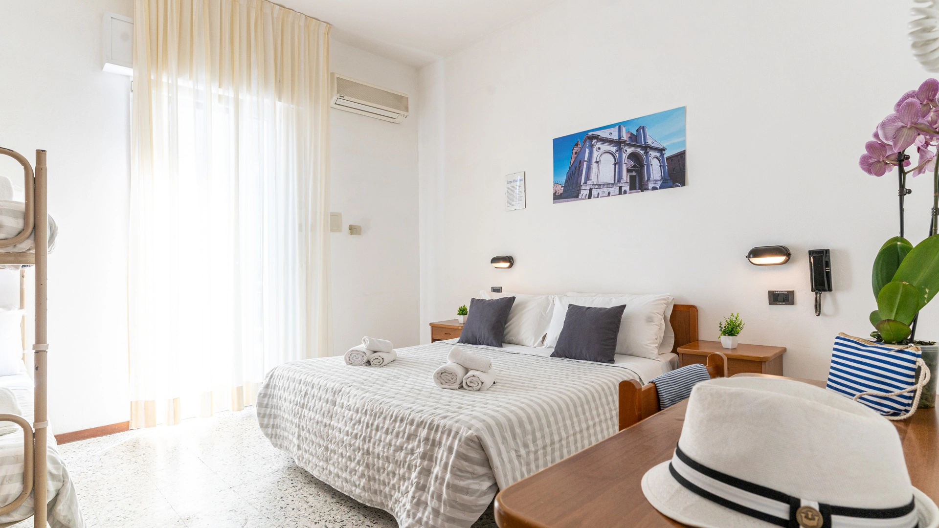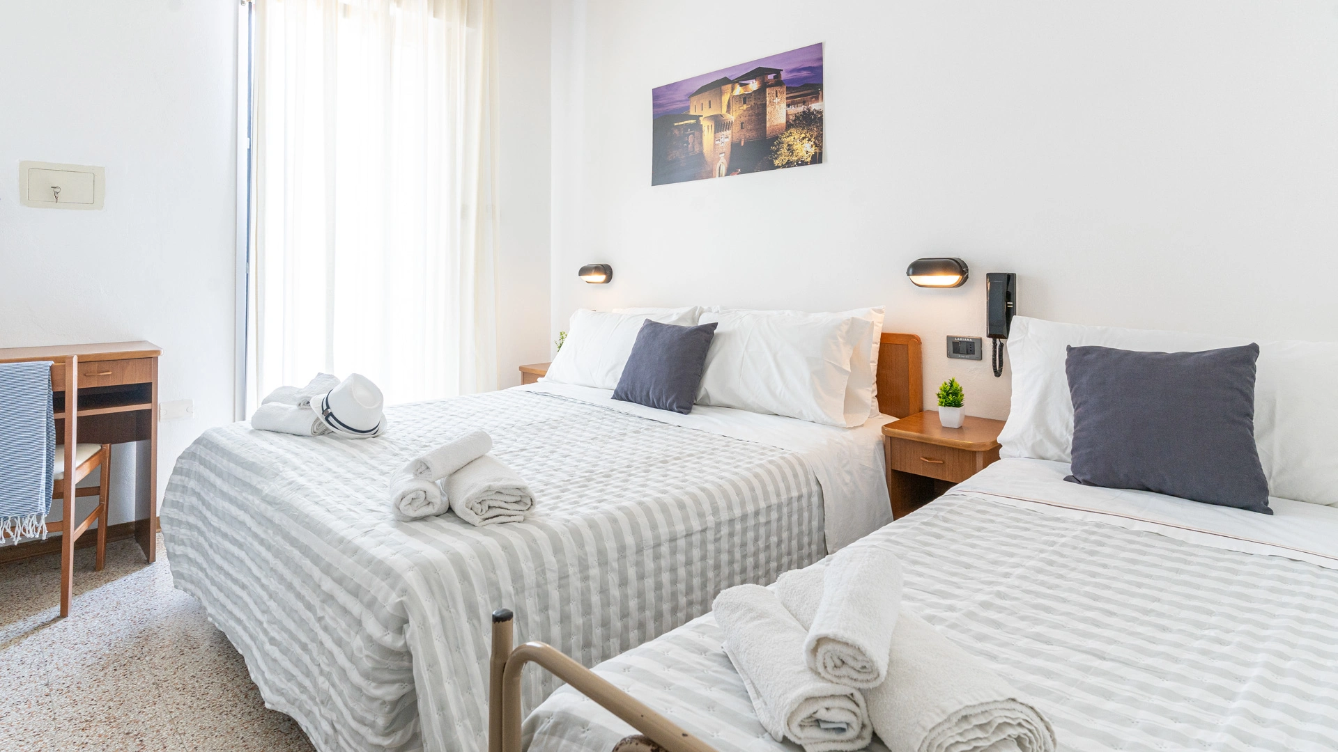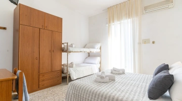 Le camere dell’hotel sono dotate di balcone (con vista mare su richiesta), TV, cassaforte, connessione Wi-Fi, bagno privato con doccia, set di cortesia e asciugacapelli. Aria condizionata a pagamento; la pulizia delle camere viene effettuata giornalmente.
