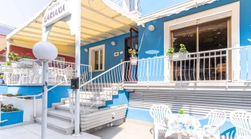 Questo albergo è a Rivazzurra, frazione a sud di Rimini, ben conosciuta per le lunghe spiagge, i ristoranti, i locali e gli ottimi servizi. Il centro di Rimini e di Riccione si raggiunge in pochi minuti di macchina o di autobus. L’hotel si trova in una via interna, silenziosa ma a pochi passi dal viale del lungomare. Il parco tematico di Fiabilandia dista meno di 15 minuti a piedi.