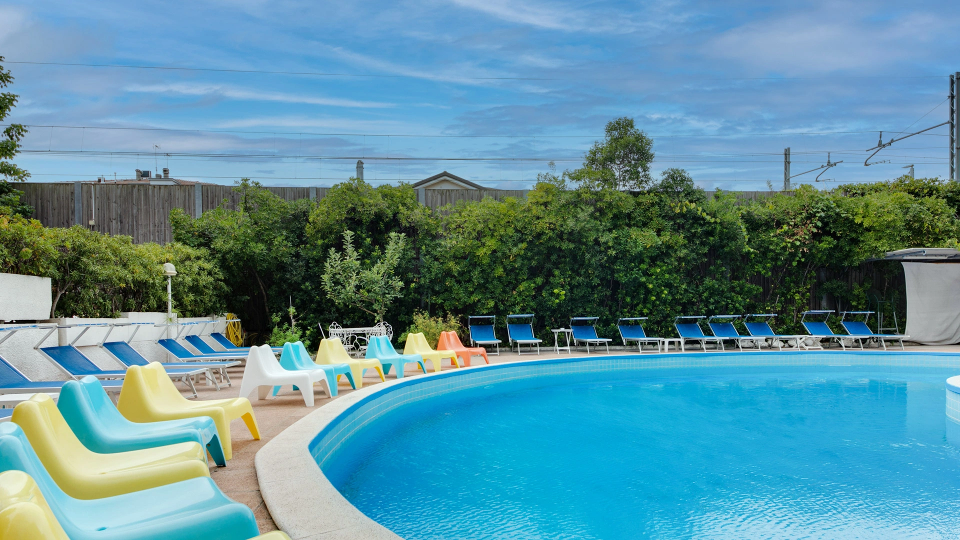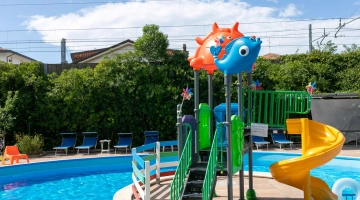 La grande piscina con scivolo, sempre al sole, è ampia 190 mq e circondata da una zona solarium attrezzata con più di 40 lettini. Un'area ben delimitata ampia 10 mq ha una profondità di soli 90 cm per permettere anche ai più piccoli di divertirsi in sicurezza.