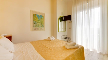 Le stanze sono dotate di balcone, vista mare parziale, aria condizionata, cassaforte elettrica, telefono, TV Sat, Wi-Fi fibra, bagno privato con box doccia e phon. Frigobar su richiesta a pagamento.