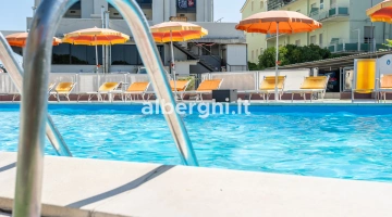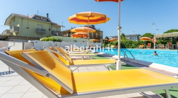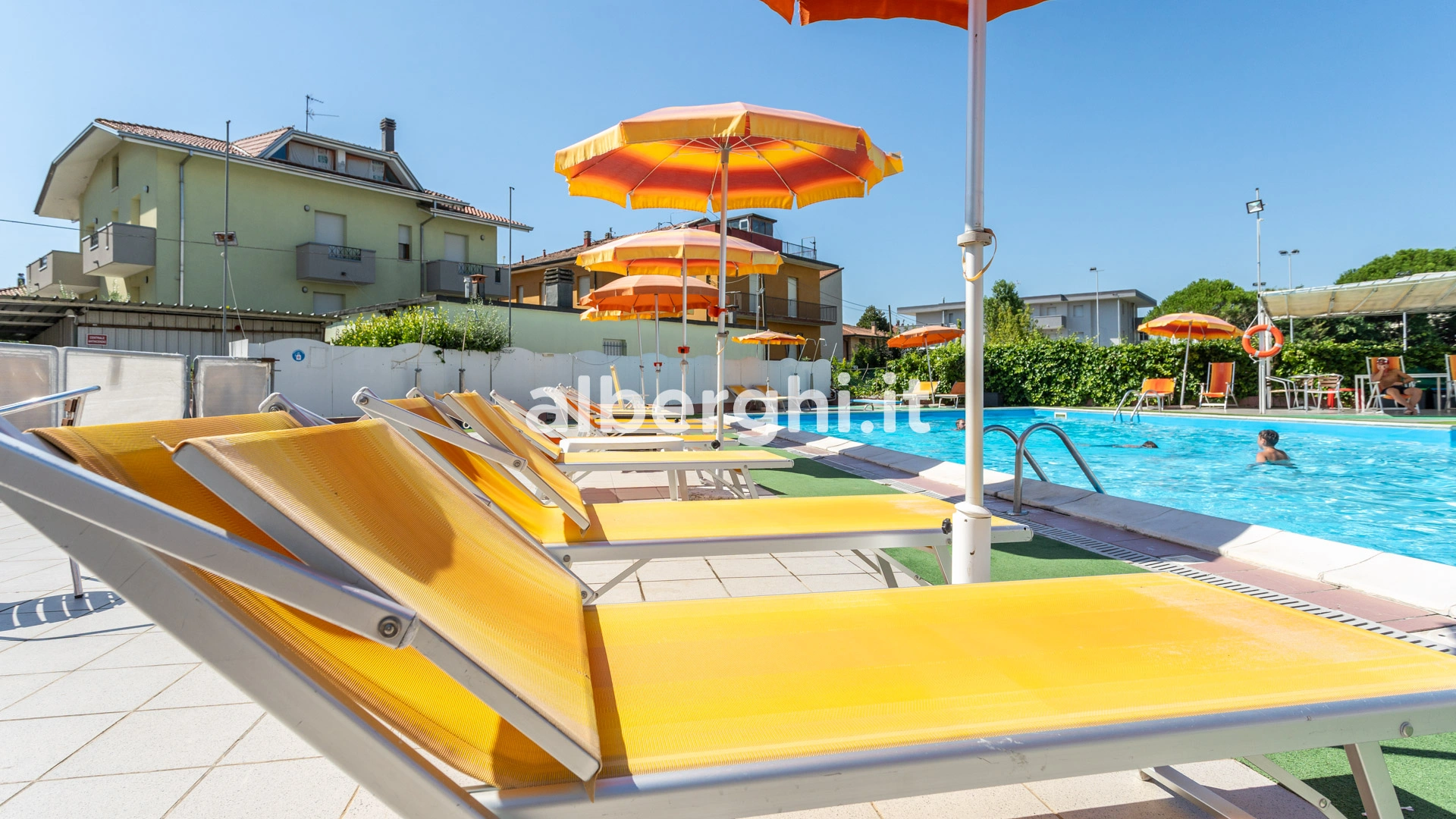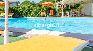 Il giardino dell'hotel ospita una piscina ampia 120 mq e profonda da 50 a 200 cm. Accessibile da maggio a settembre, la piscina è dotata di trampolino e circondata da zona solarium con sdrai, lettini e zona bimbi.