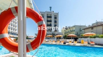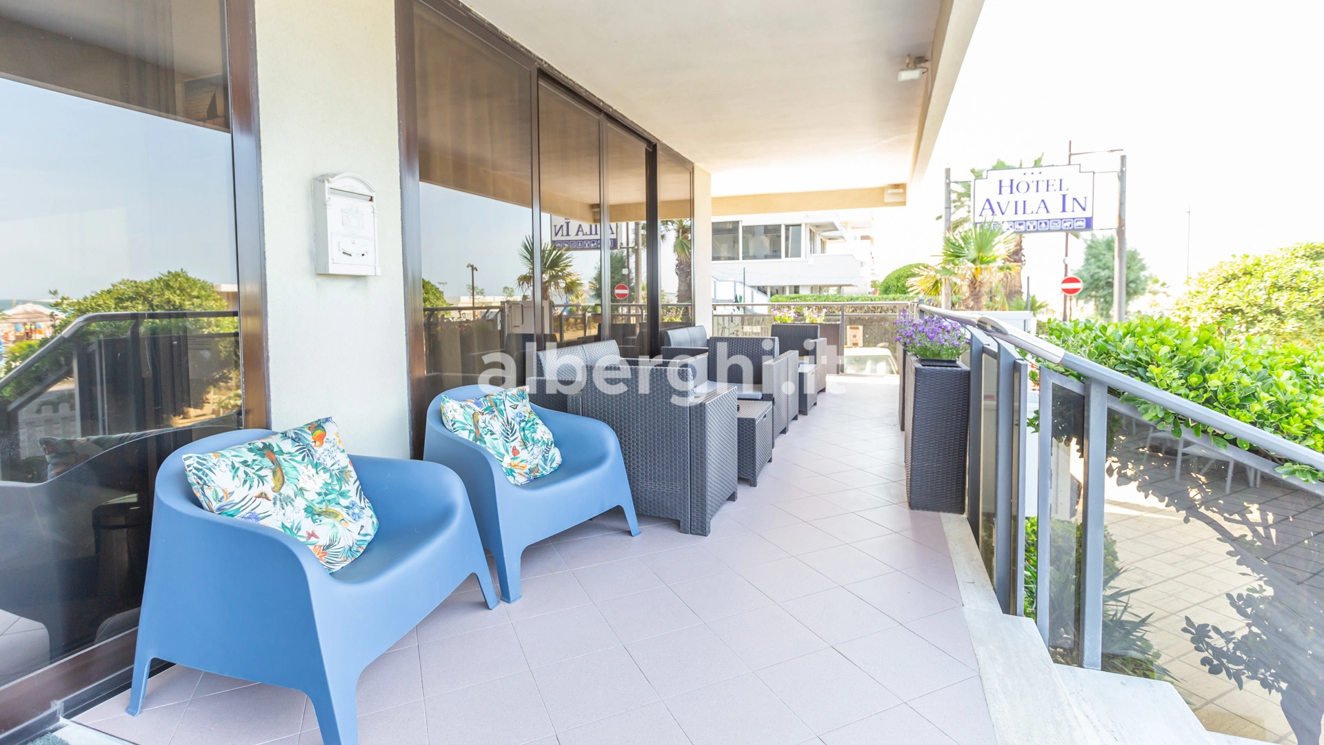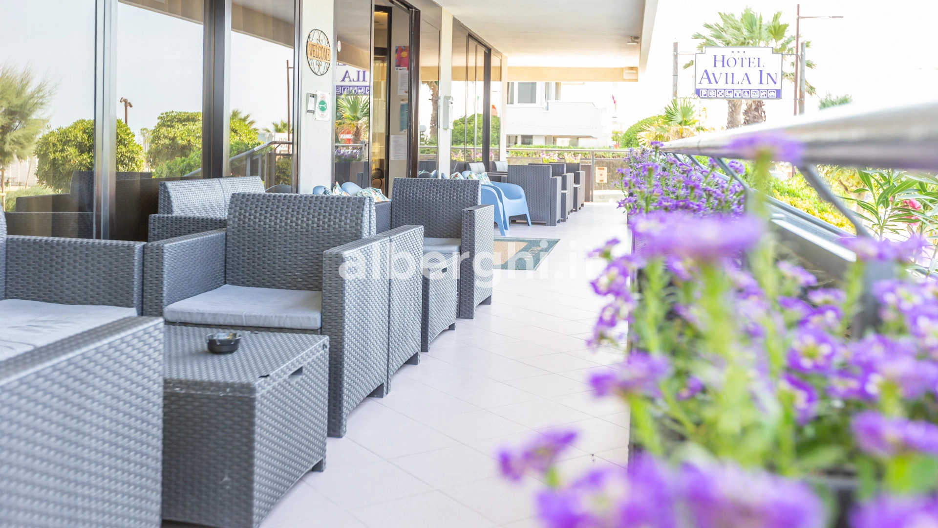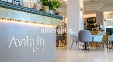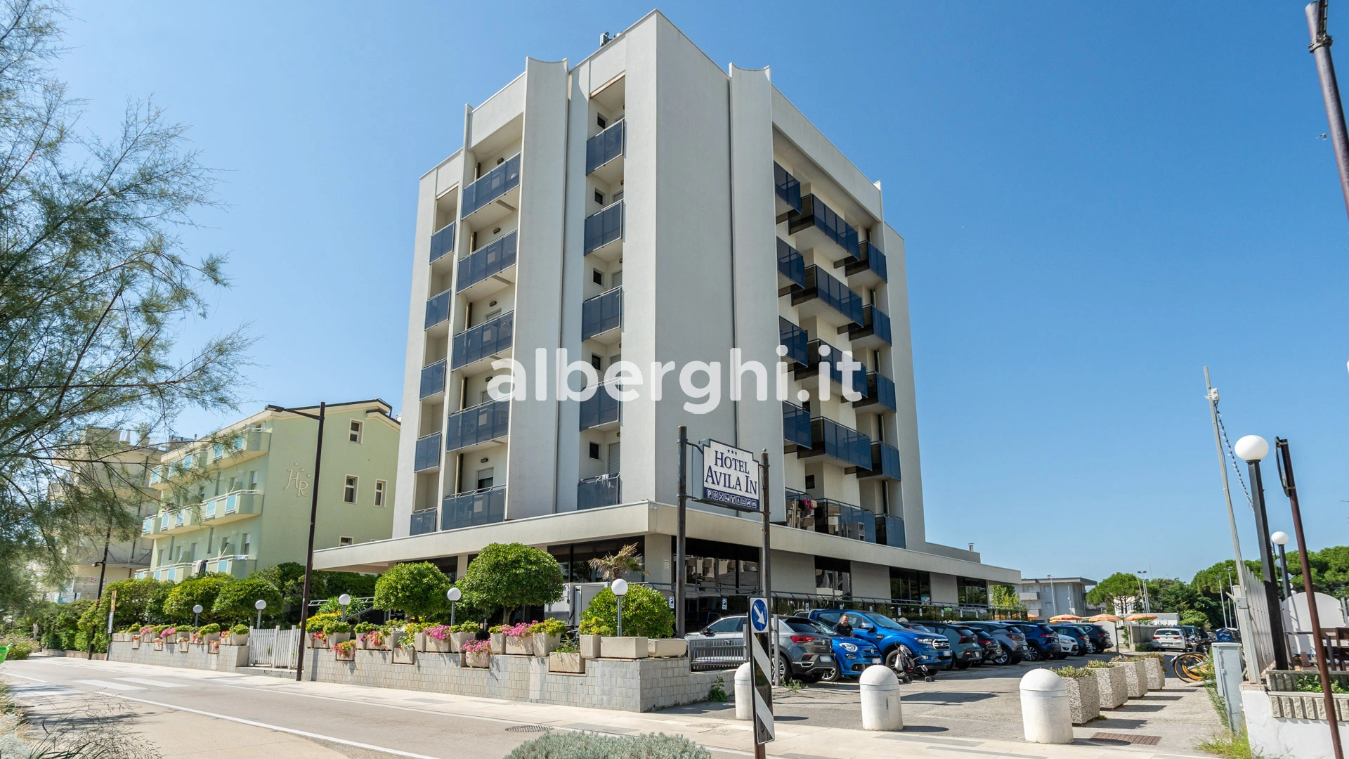 L'Hotel Avila In, 3 stelle di Torre Pedrera di fronte al mare, dispone di un'ampia piscina con trampolino, servizi per bambini e parcheggio privato disponibile su prenotazione. Ammette animali di piccola taglia.