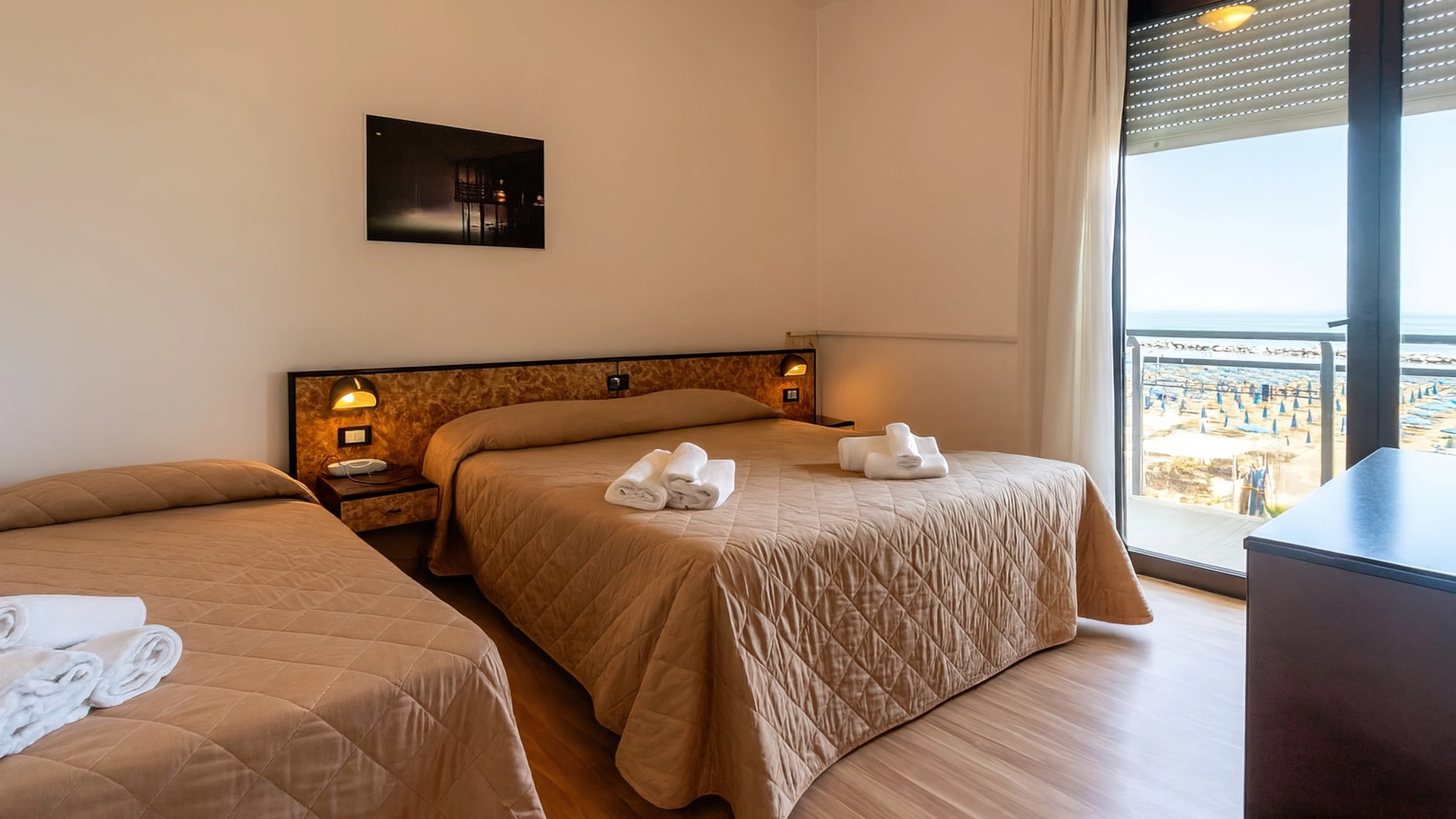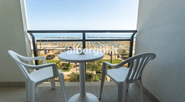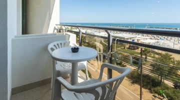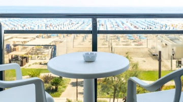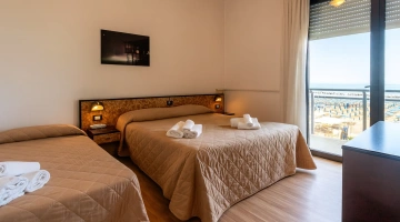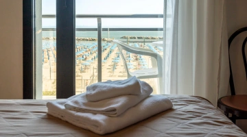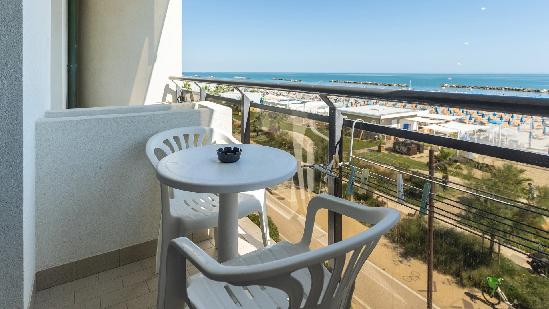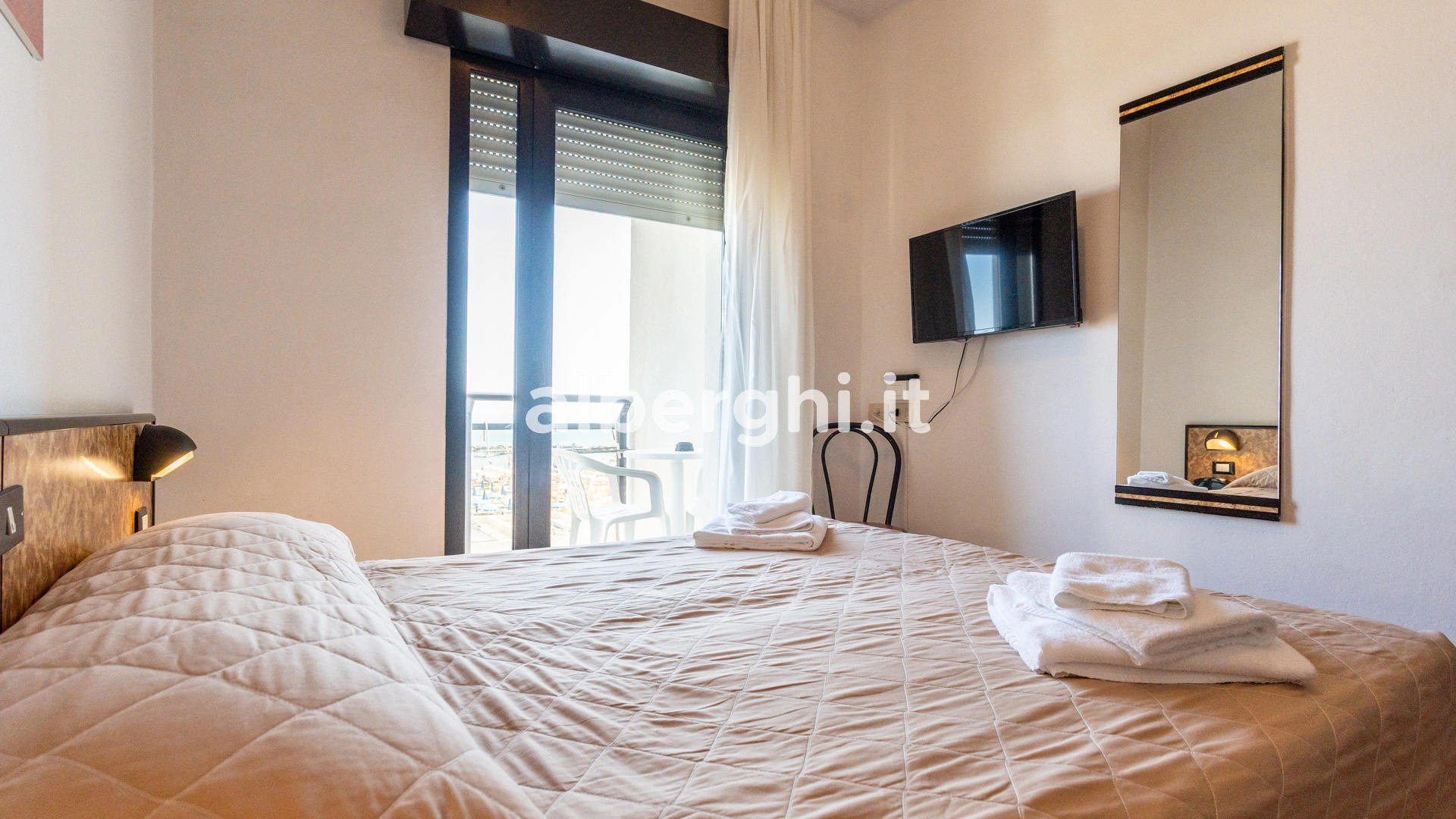 Tutte le stanze dispongono di balcone privato, aria condizionata, riscaldamento, cassaforte, Smart TV sat, telefono, bagno con box-doccia e asciugacapelli, frigobar e connessione Wi-Fi veloce. Su richiesta con supplemento: vista mare.