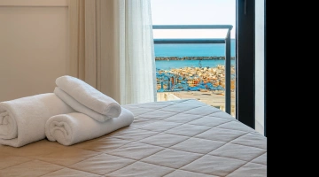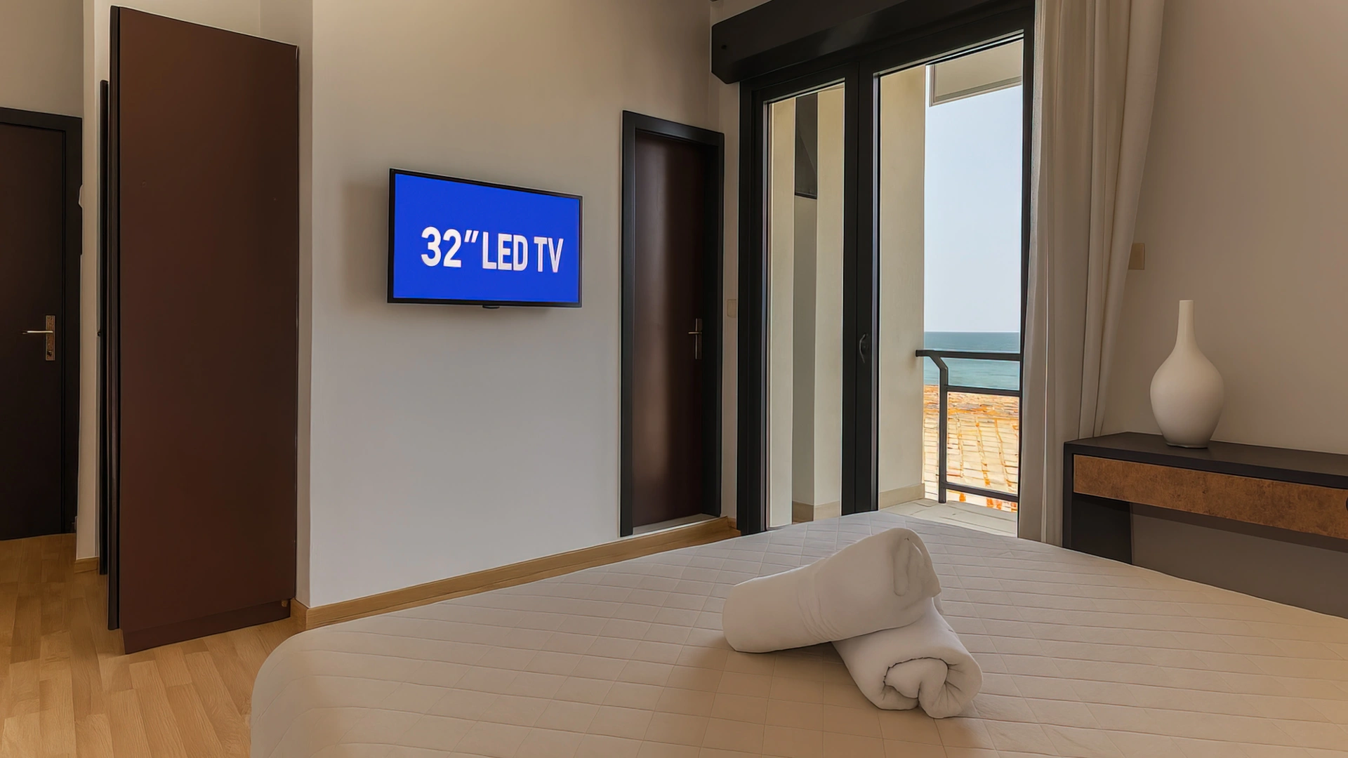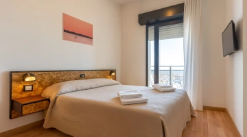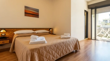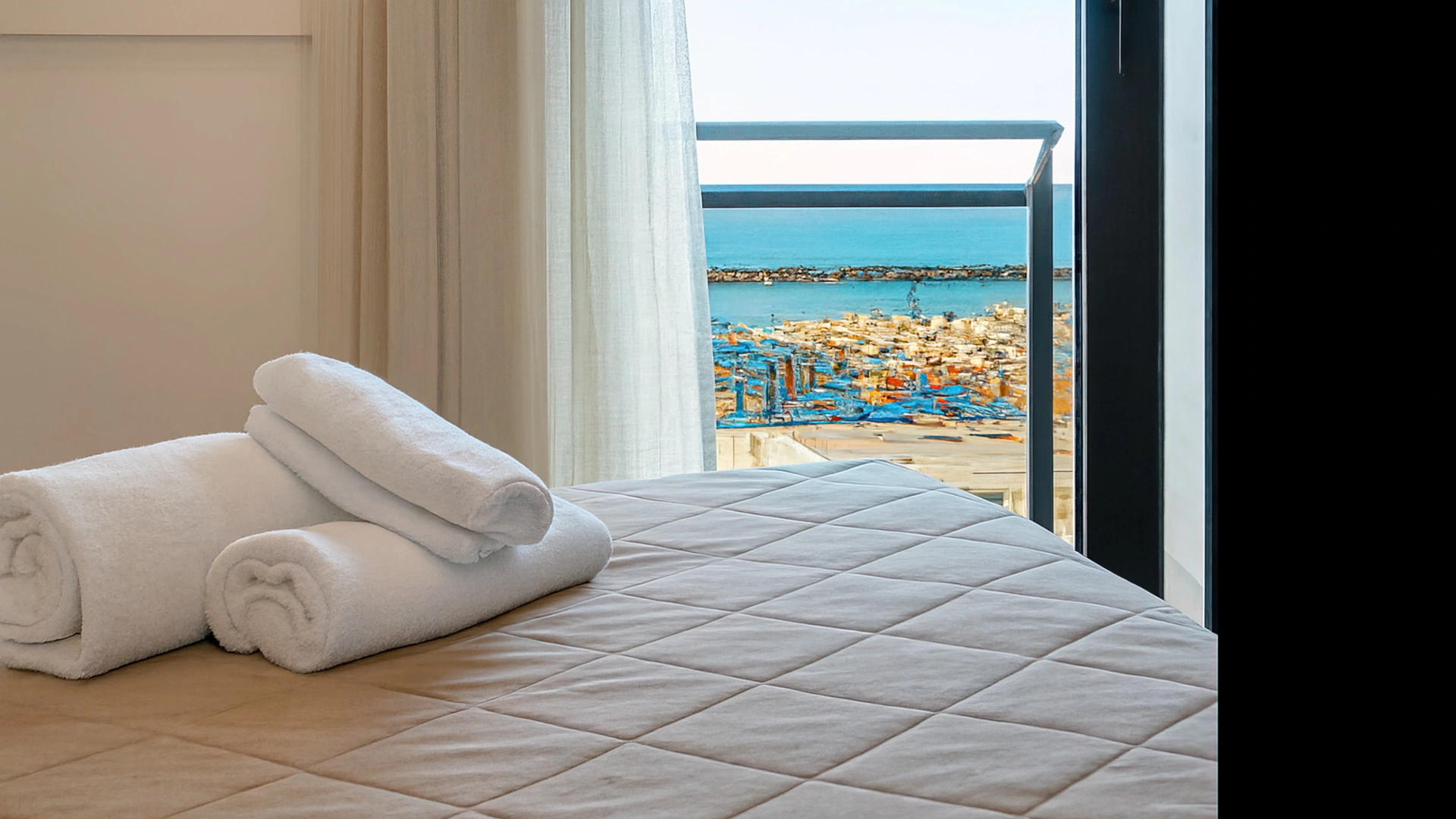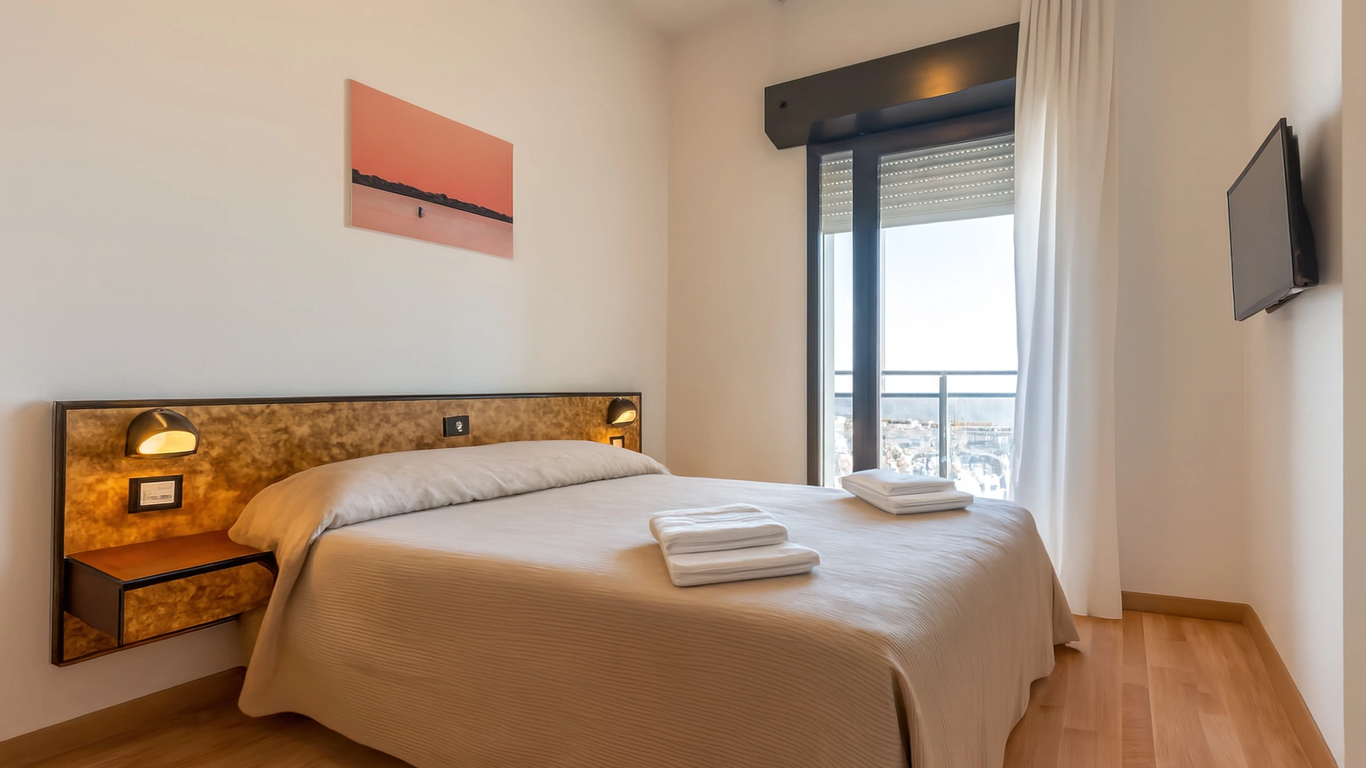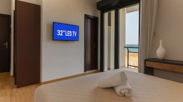 Tutte le stanze dispongono di balcone privato, aria condizionata, riscaldamento, cassaforte, Smart TV sat, telefono, bagno con box-doccia e asciugacapelli, frigobar e connessione Wi-Fi veloce. Su richiesta con supplemento: vista mare.