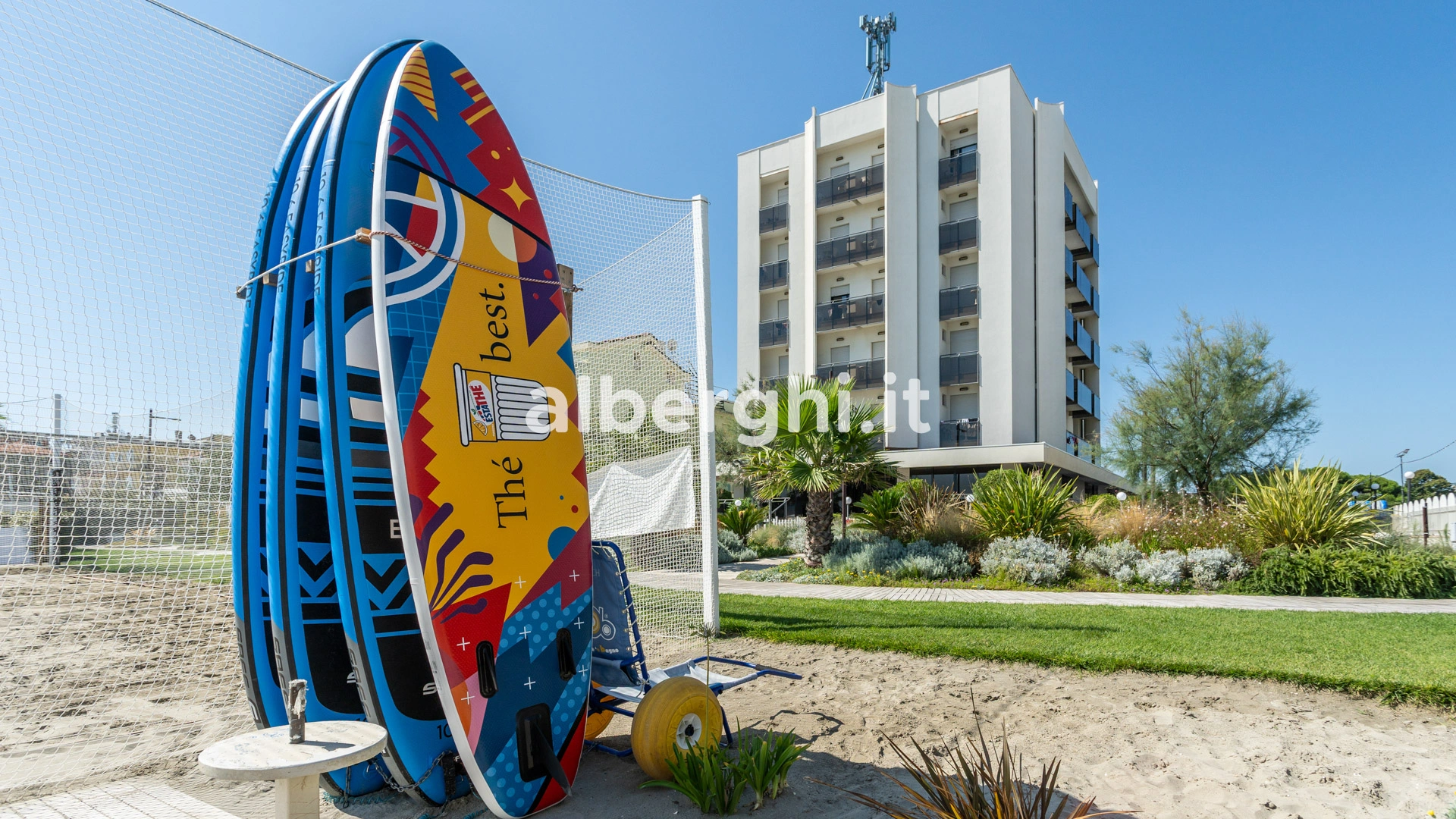 L'hotel si trova sul lungomare di Torre Pedrera proprio di fronte alla spiaggia. La posizione è comoda per chi si reca alla Fiera di Rimini e al parco Italia in Miniatura, entrambi distanti meno di 10 minuti in auto o coi mezzi pubblici.