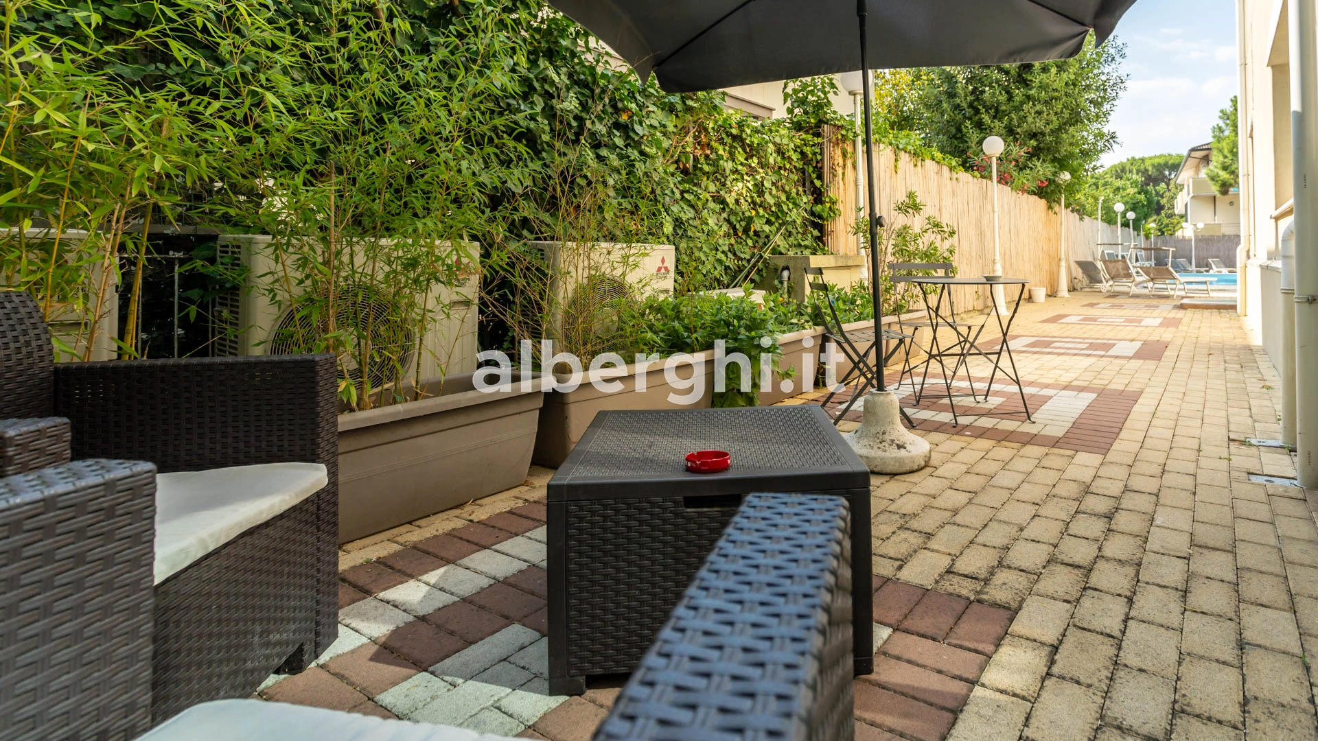 Giardino, solarium, veranda, bar, biciclette ad uso gratuito, sala TV, quotidiani a disposizione, intrattenimento serale e animazione per adulti.