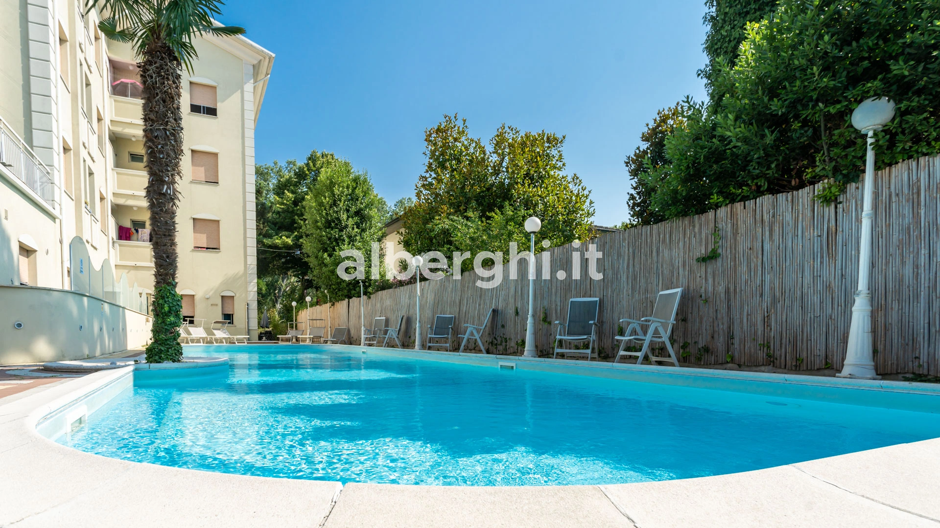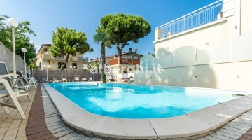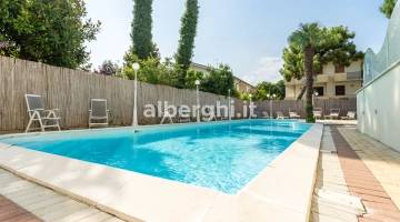 La piscina è ampia 90 mq e profonda da 50 a 140 cm. Si trova in giardino e offre la possibilità di gustare un aperitivo a bordo vasca.