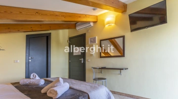 Le stanze sono dotate di balcone, aria condizionata, Wi-Fi, TV Sat, cassaforte, telefono, bagno con box doccia e phon.