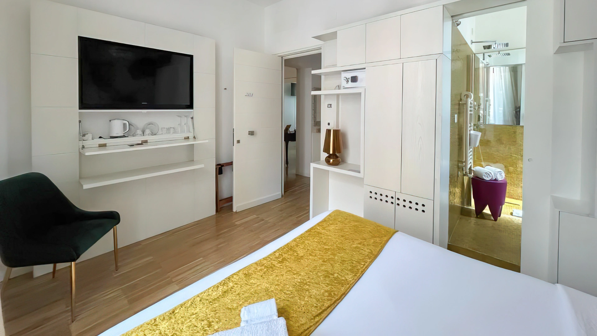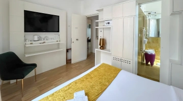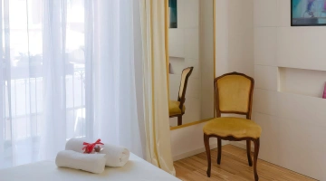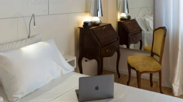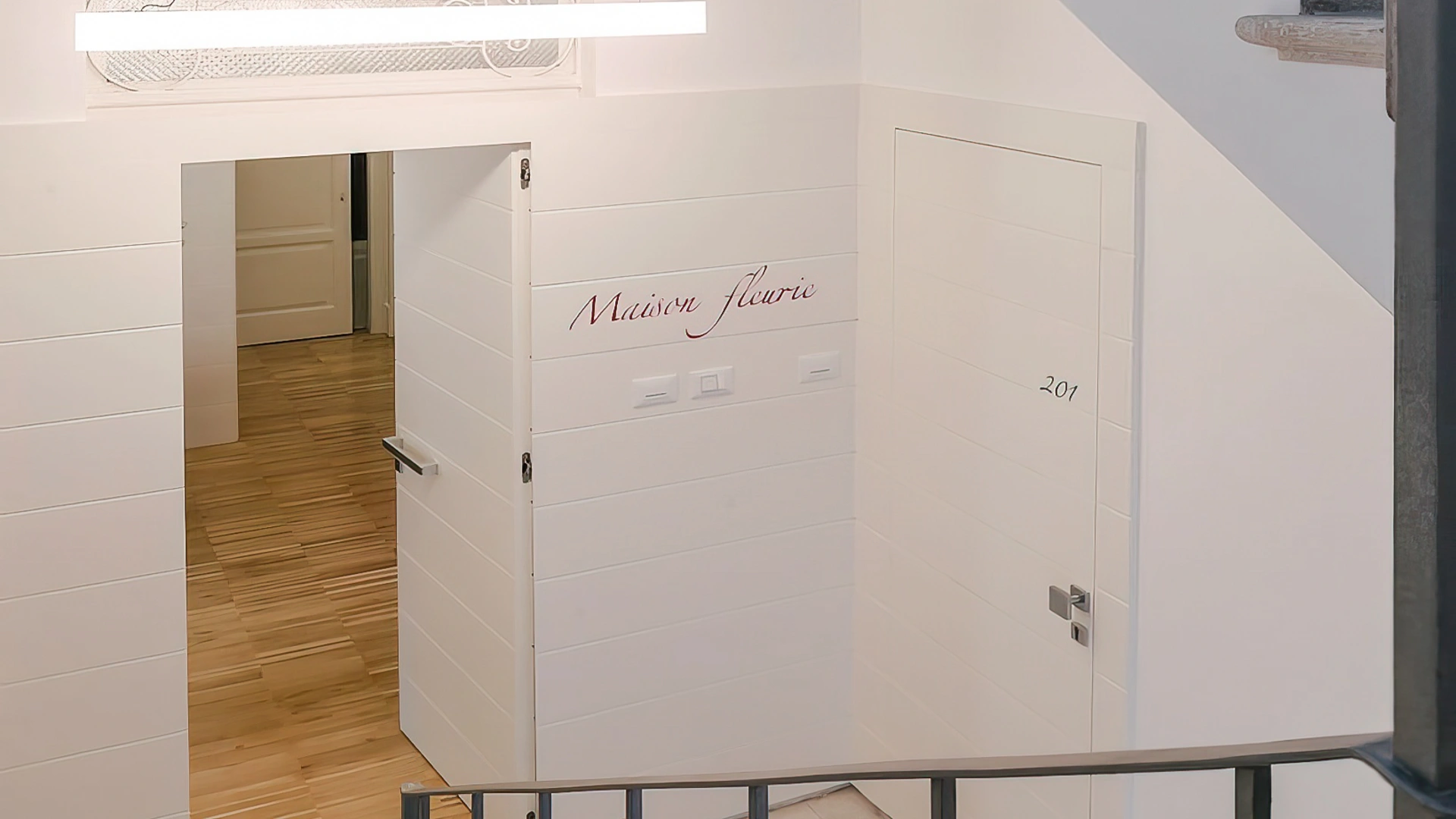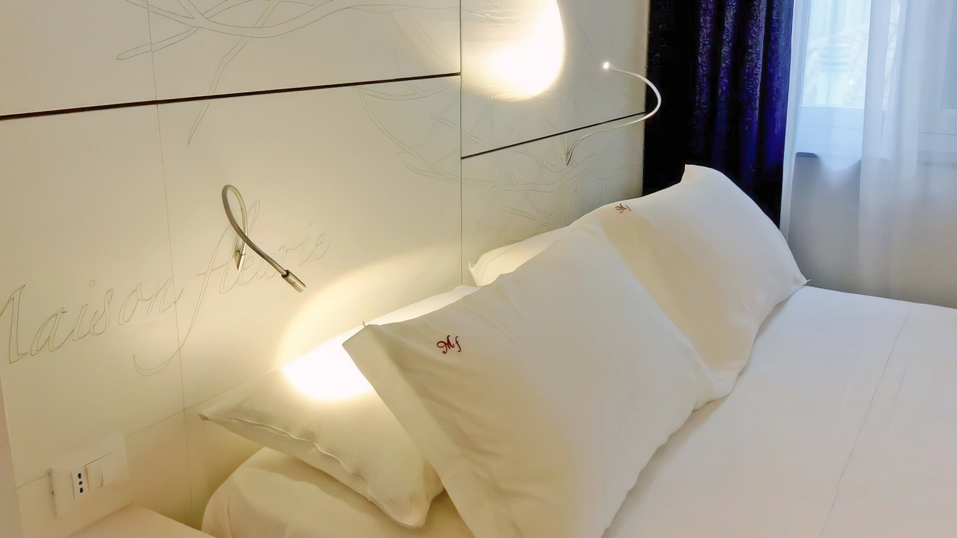 The rooms at Maison Fleurie are all furnished with designer furniture and decorations. The services available in the room are: air conditioning, kettle, minibar, Wi-Fi connection, smart TV, safe, private bathroom with shower cubicle, hairdryer and courtesy set. There is a room with a balcony and communicating solutions.