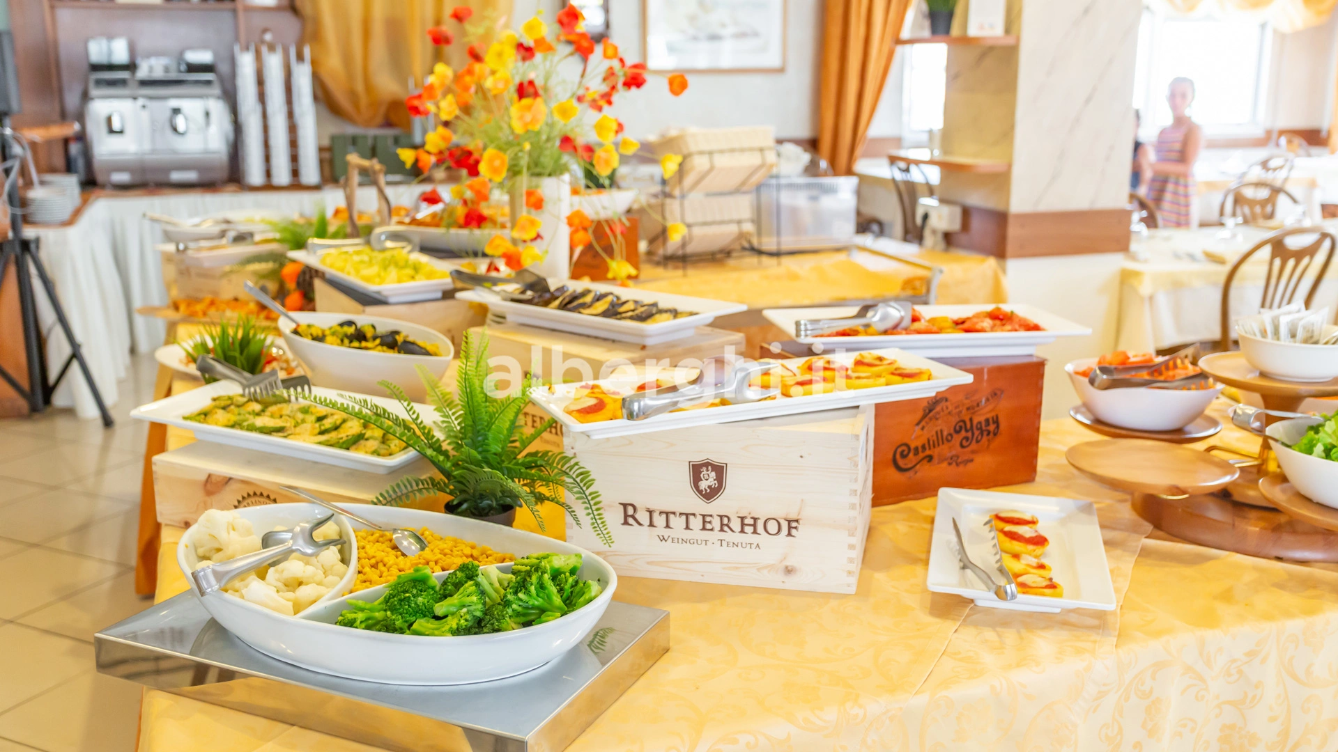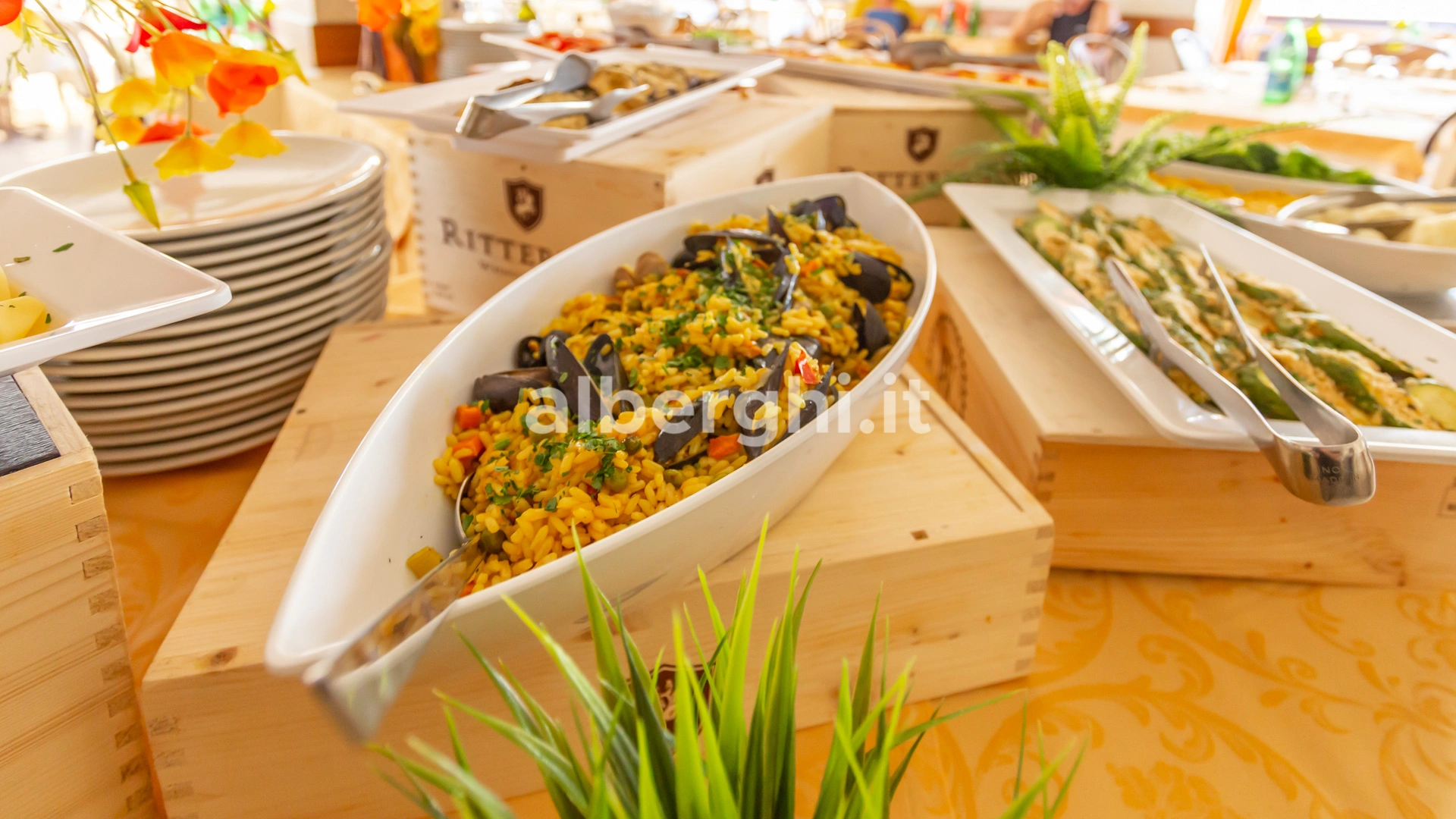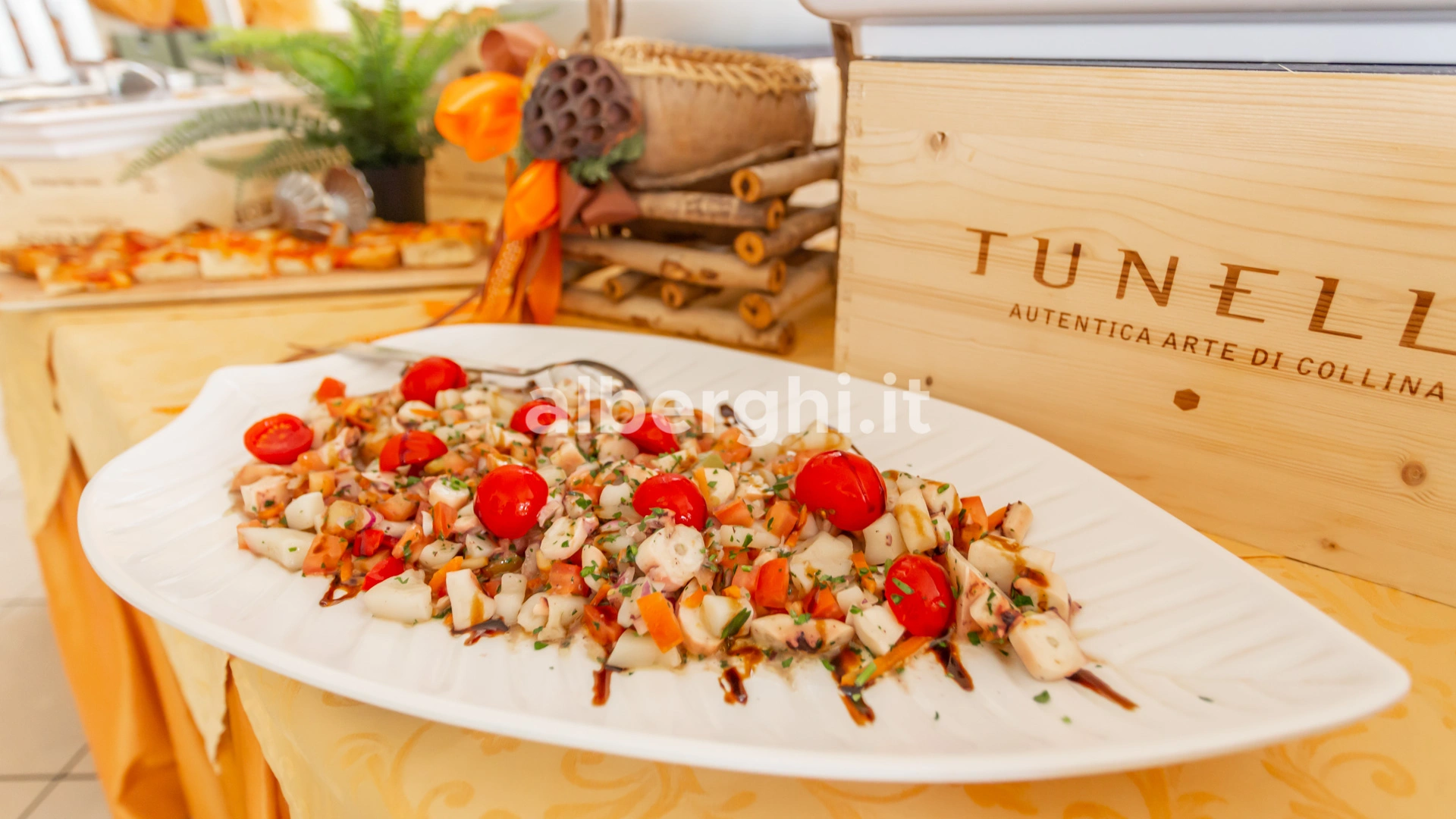 LUNCH AND DINNER: menu with 3 or more choices, accompanied by vegetables and side dishes, pasta and homemade desserts. The kitchen favors typical Romagna dishes with fish dishes and local raw materials.