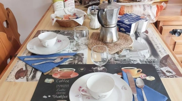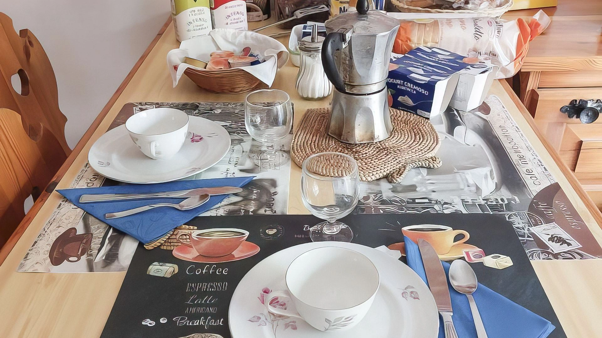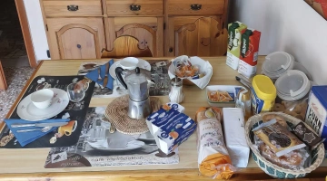 Breakfast is based on sweet and savory dishes including biscuits, bread, jam, honey, yoghurt, chocolate, fresh fruit, cold cuts and cheeses. All this is accompanied by coffee drinks, milk and fruit juices.