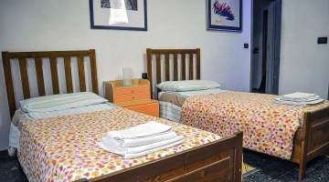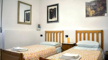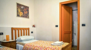 The structure consists of 3 double bedrooms, in two of which it is possible to add a third single bed by paying an additional cost. The furnishings are simple and functional, with wooden elements and artistic reproductions on the walls. The accommodations have TV, air conditioning, luggage rack, mini fridge and air conditioning. Two of the rooms have a private internal bathroom with hairdryer and courtesy set, while the third room has an external bathroom, also private.