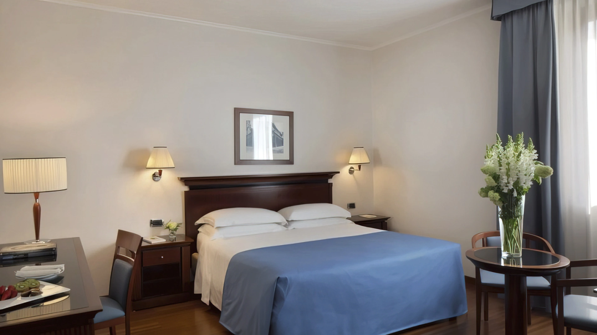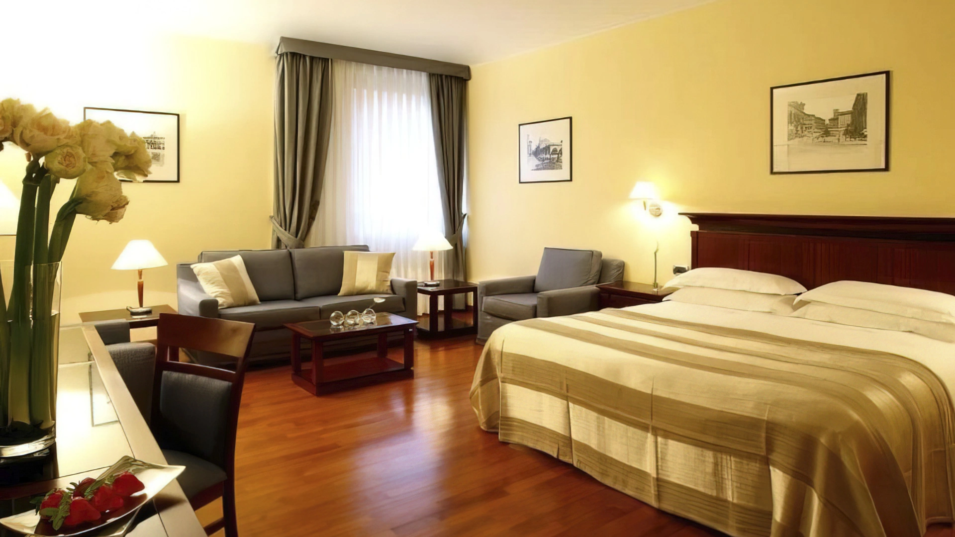 The structure has 193 accommodations, welcoming and furnished in a classic style. They are divided into 5 types: Superior, Deluxe, Junior suite, Suite and Family. All are equipped with air conditioning, heating, TV, minibar, electric kettle with a set of hot drinks, safety deposit box, courtesy kit for personal hygiene and Wi-Fi connection. The suites also have a living area and an espresso machine.
