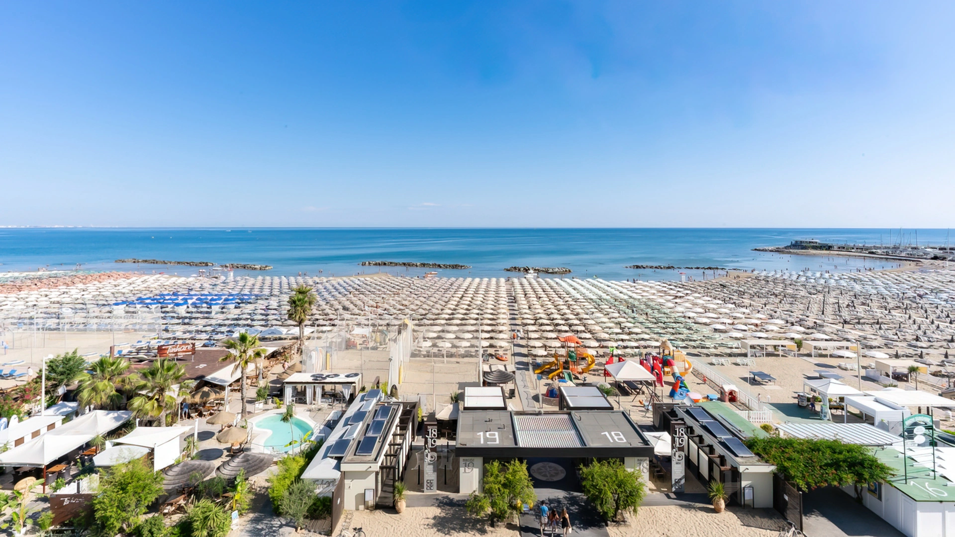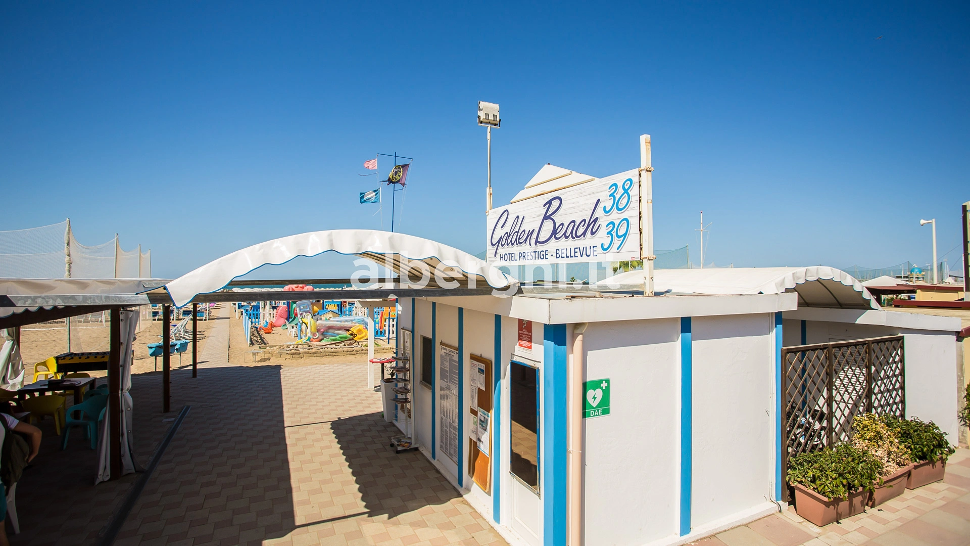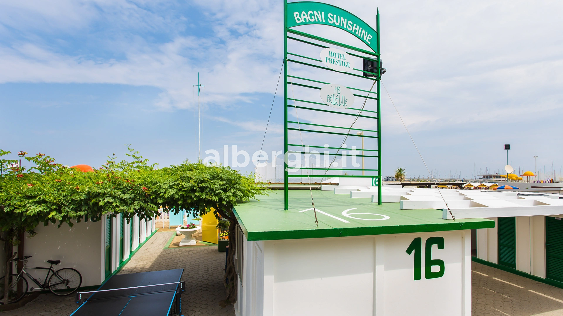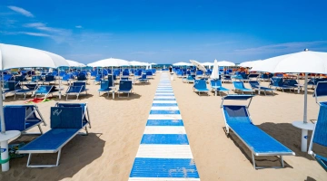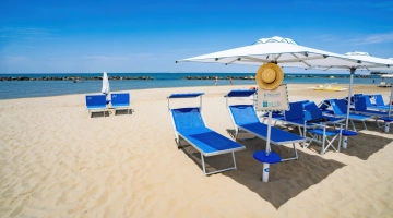 The facility has an agreement with the beaches Sunshine Beach n.16 and Golden Beach n.38/39. Both establishments are equipped with umbrella and sunbed rental, cabins, hot showers, sports fields, baby park and entertainment.